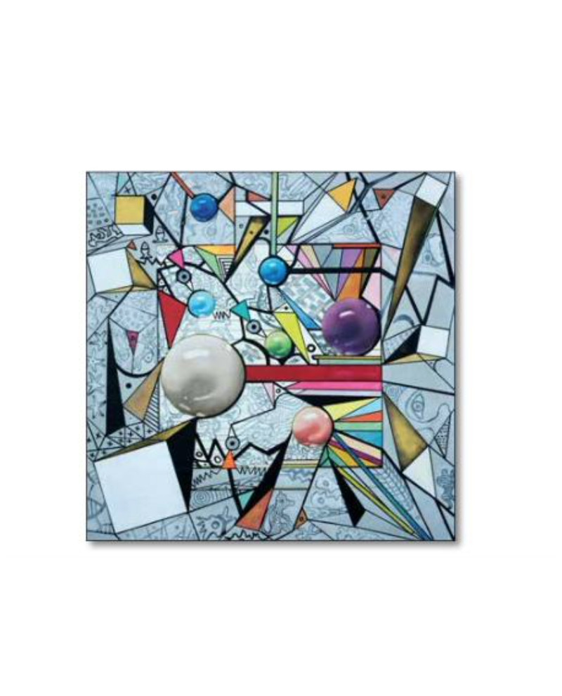 Son univers artistique est géométrique avec des sphères, des cubes, des triangles, des lignes tout en étant très coloré.