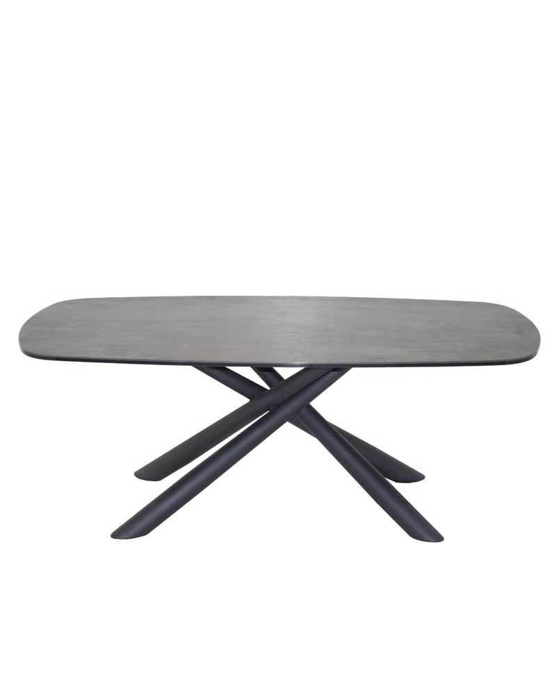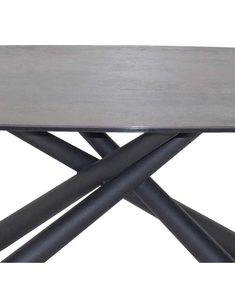 Base en métal laqué époxy noir, dessus en céramique épaisseur 3mm collé sur verre 6mm.