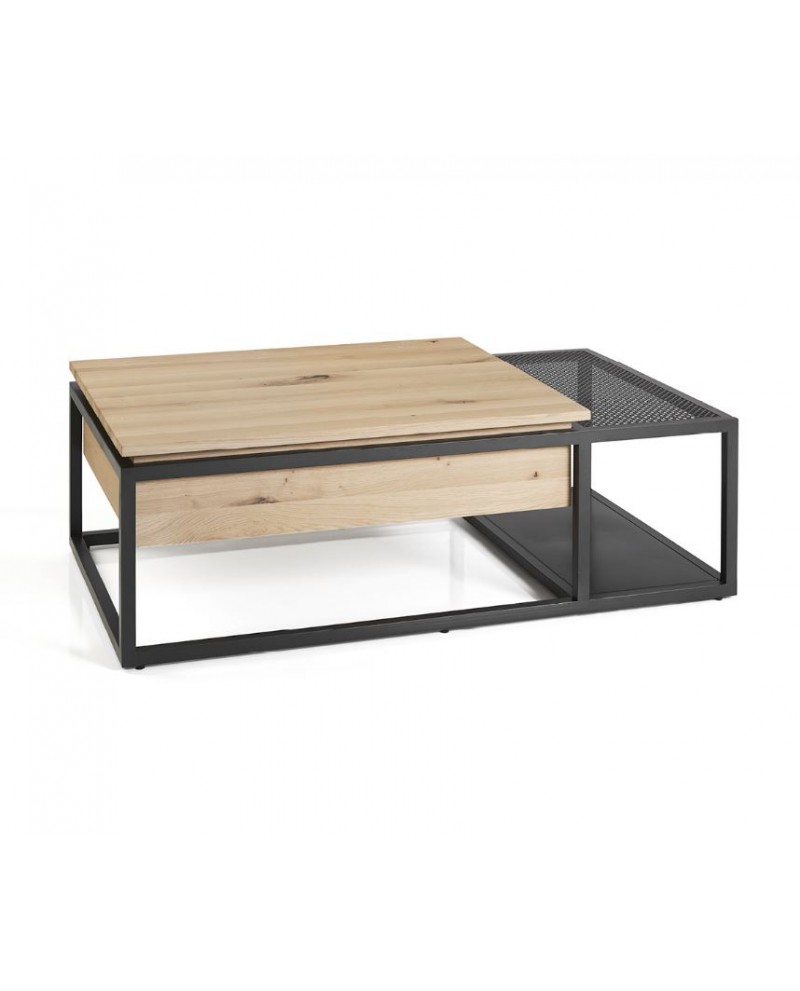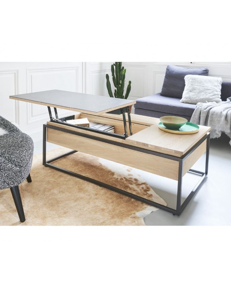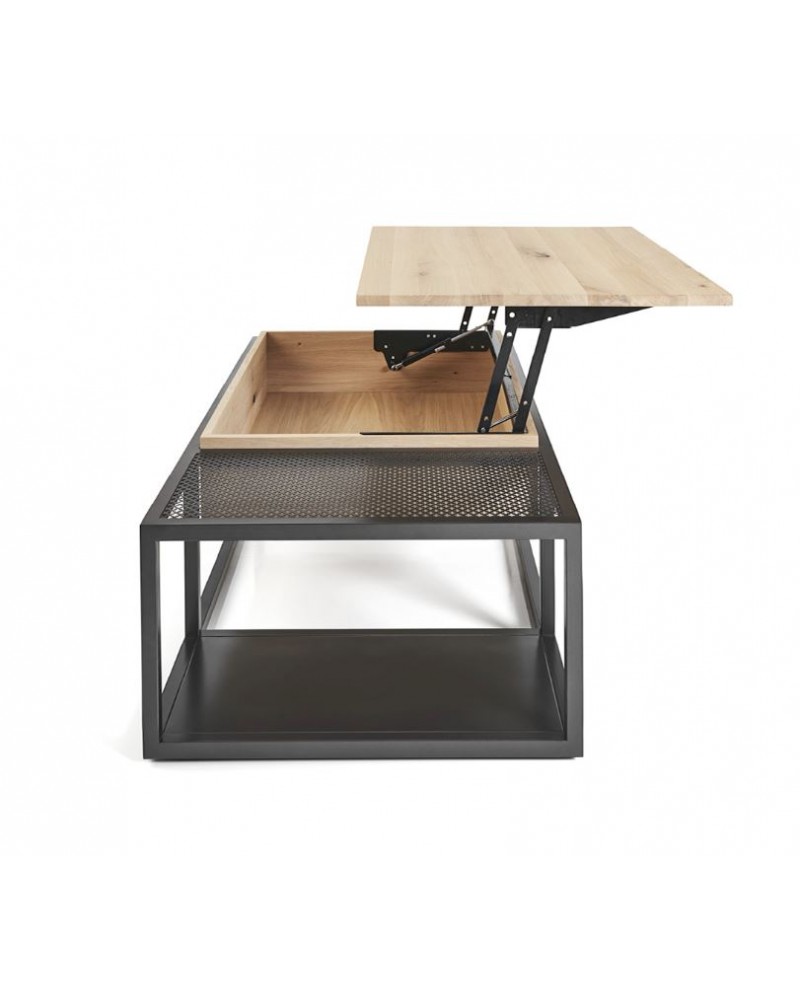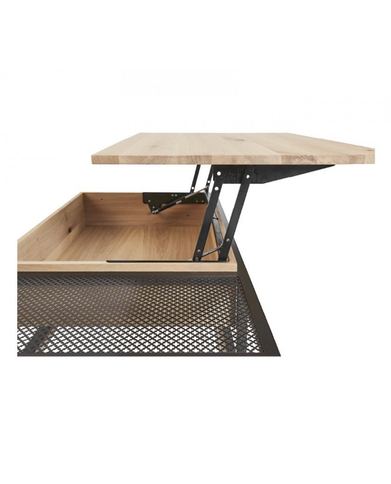Table de salon ARIZONA relevable, dessus placage chêne à nœuds.