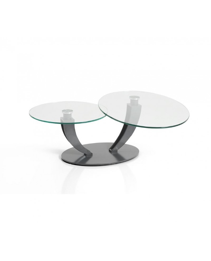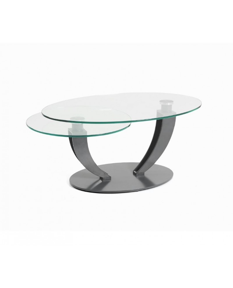 Table de salon MADRAS ovale dessus verre pivotant trempé 10mm.