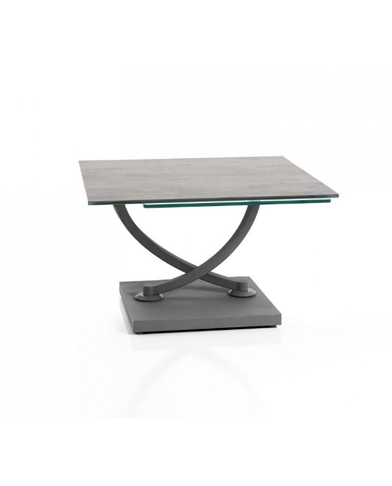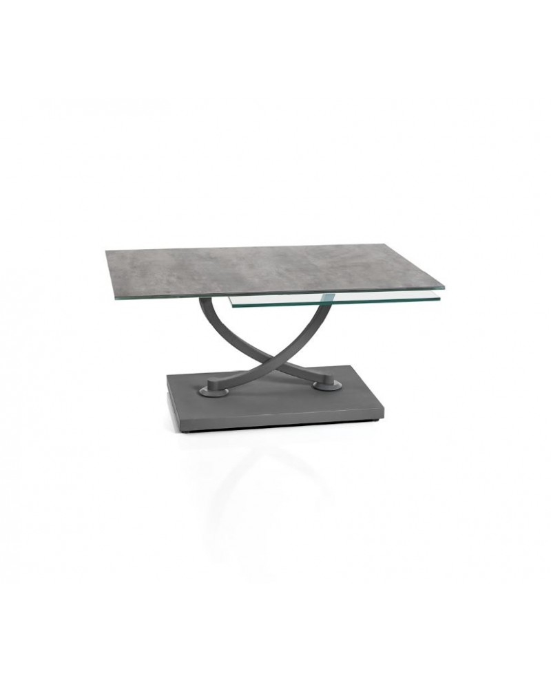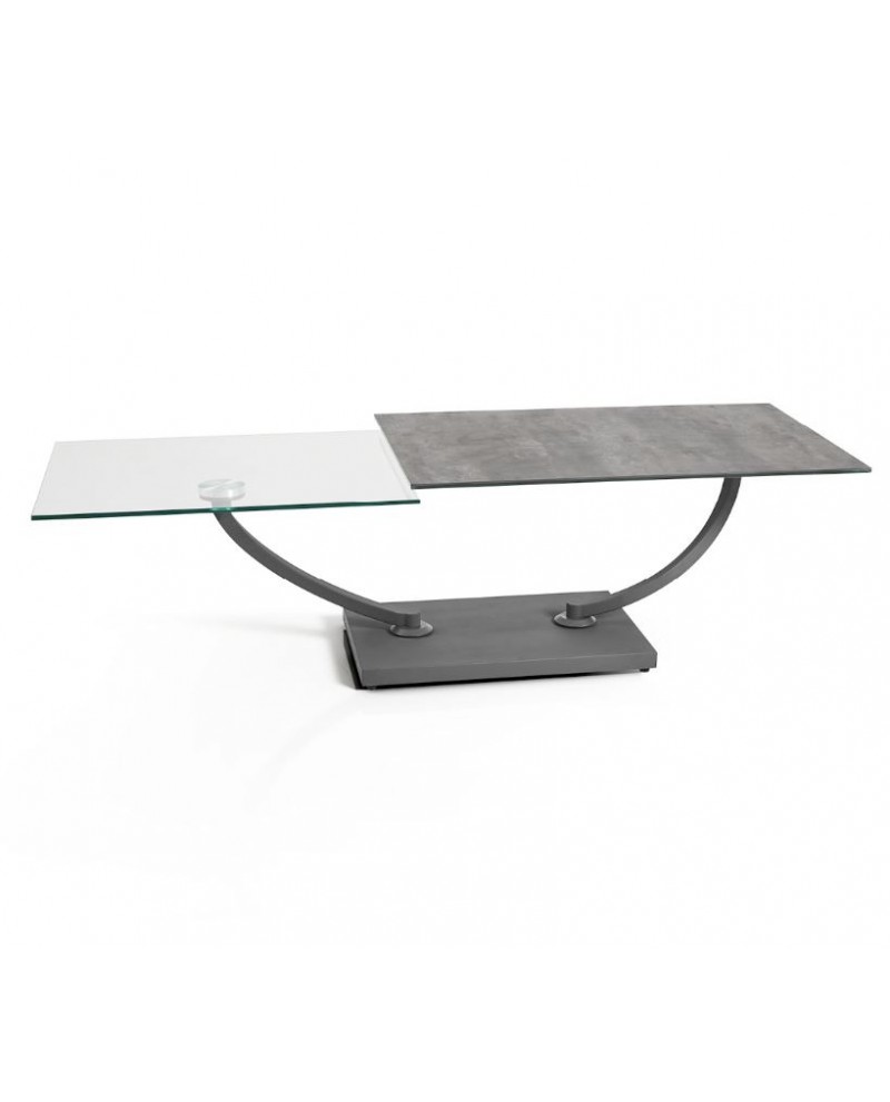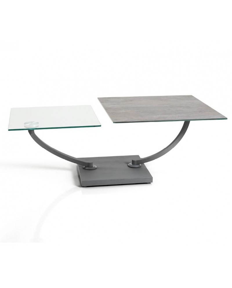 Table de salon MAGMA carrée ou rectangle dessus céramique "Basalt" pivotant verre trempé 10mm.