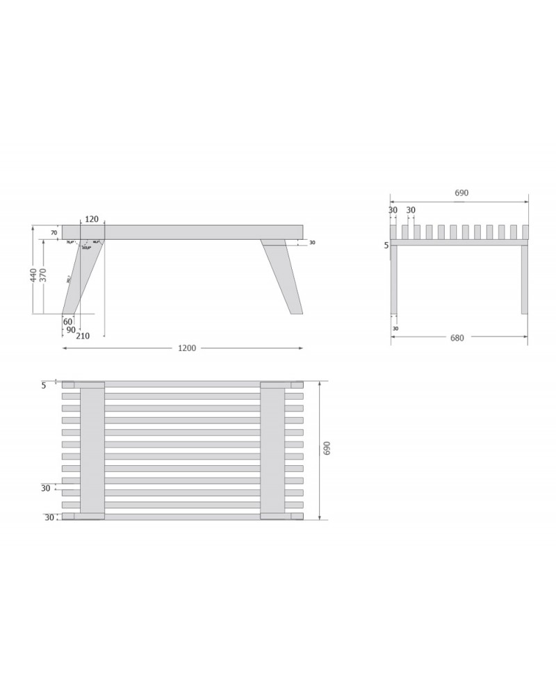 Largeur 120 : L 120 x P 69 x H 44 cm