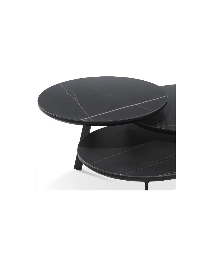 Une table basse aérienne grâce à son piétement fin, pratique avec ses plateaux mobiles, et tellement élégante.