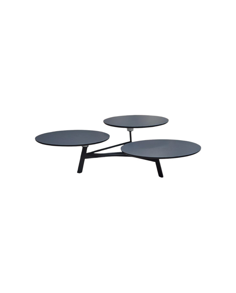Châssis en métal laqué époxy noir, 3 plateaux pivotants en panneaux de particules recouverts de céramique