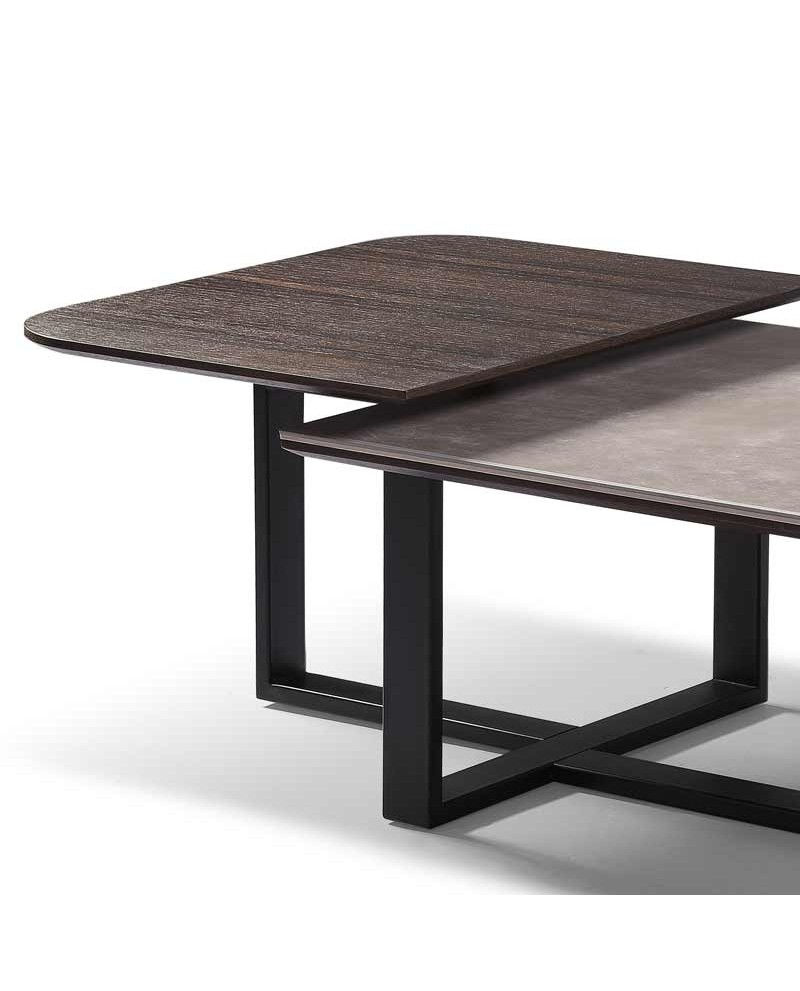 L'entrecroisement du piétement en métal laqué renforce le style industriel de l'ensemble avec une dissymétrie subtile qui offre un équilibre parfait.