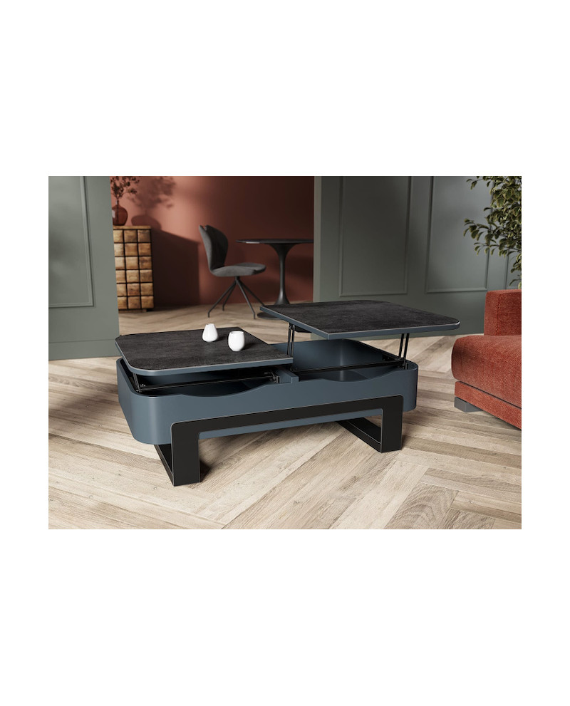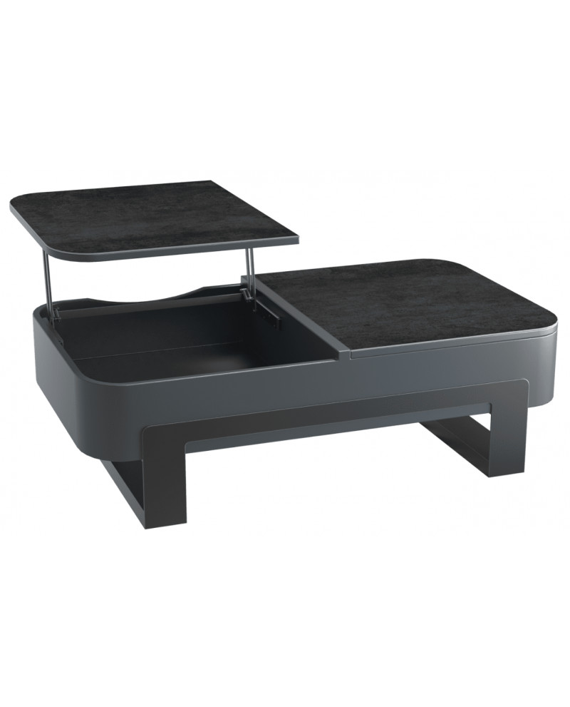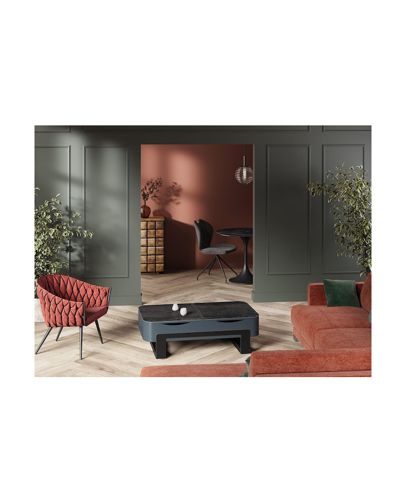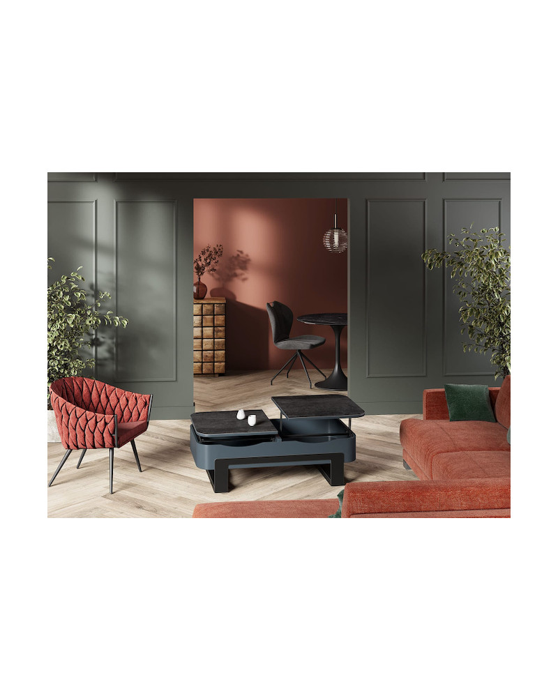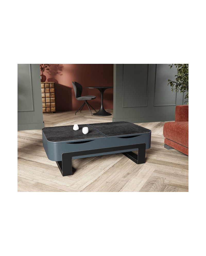Découvrez Sydney, une table basse dinette idéale pour créer un espace chaleureux et multifonctionnel. Elle dispose de deux plateaux astucieux qui se déploient facilement vers vous. Grâce à ses roulettes équipées de freins, subtilement intégrées dans son piétement, Sydney est facilement mobile. Sa structure est en MDF laqué gris anthracite, ses tablettes sont revêtues de 3 mm de céramique Marbre Calcatta. Sydney mesure 120 cm de longueur, 70 cm de largeur et 38 cm de hauteur.