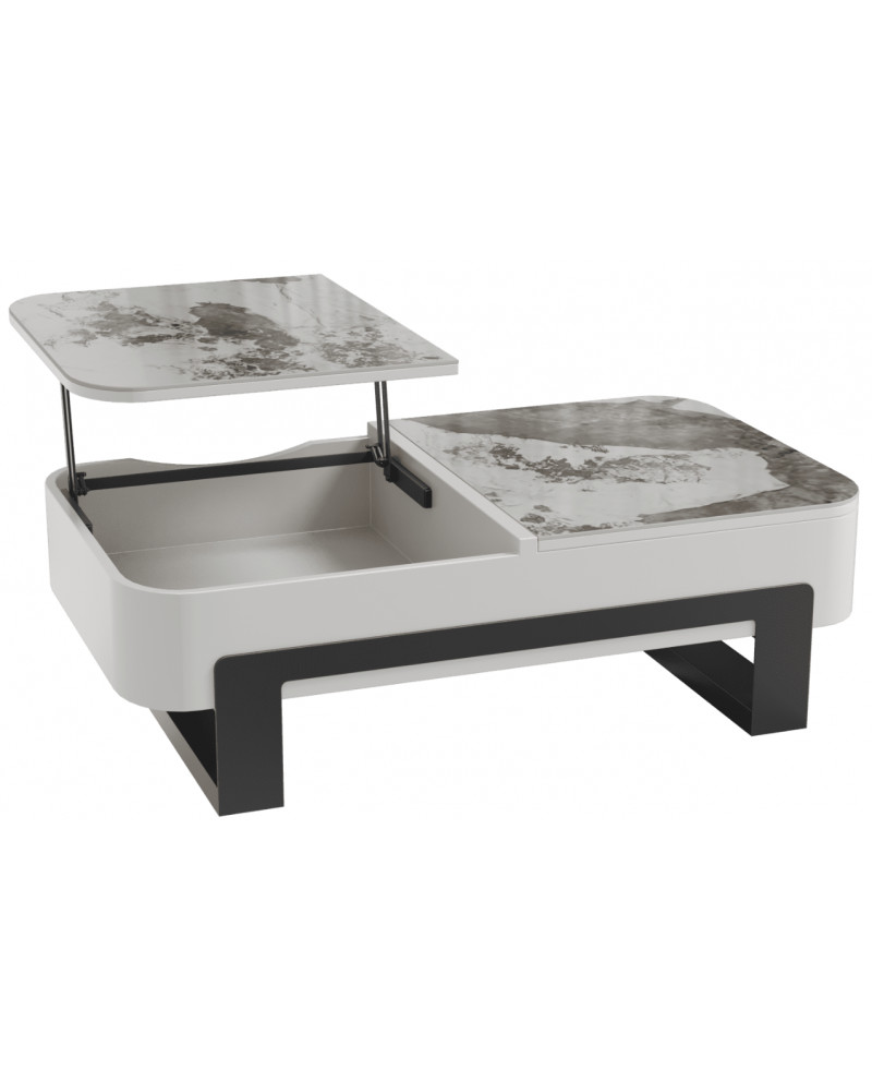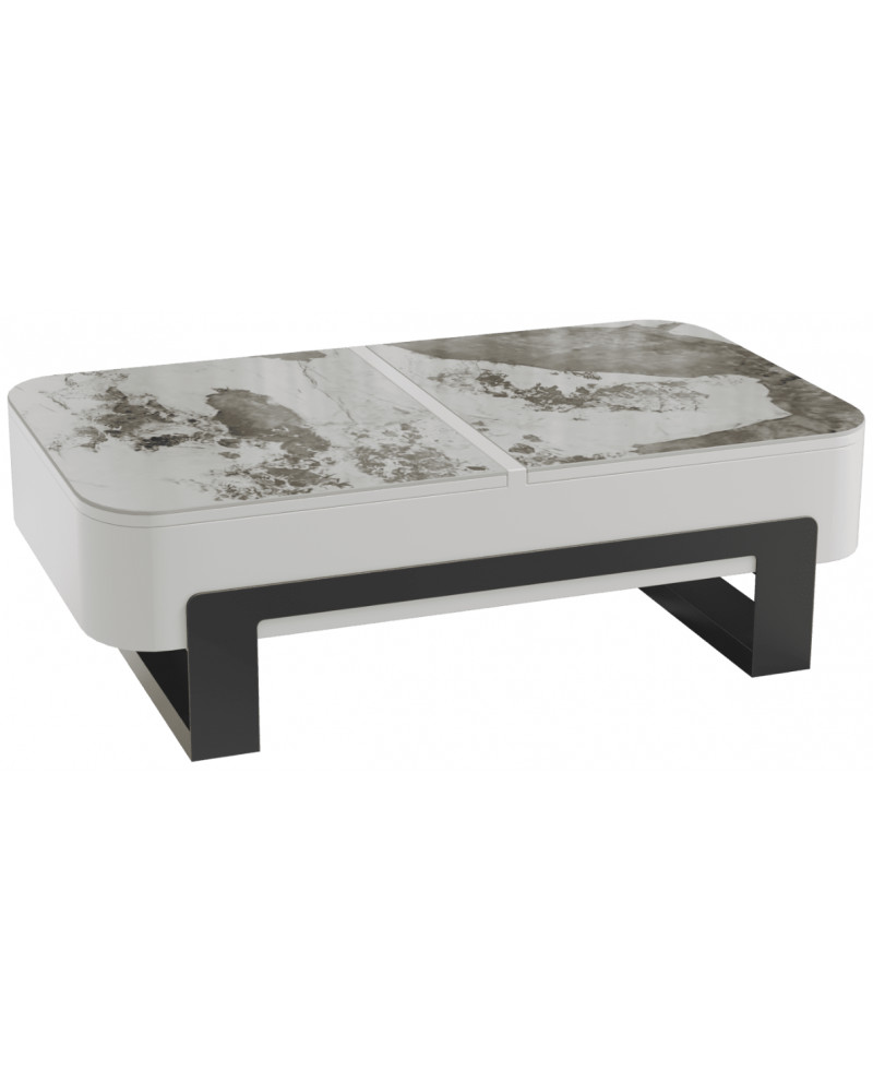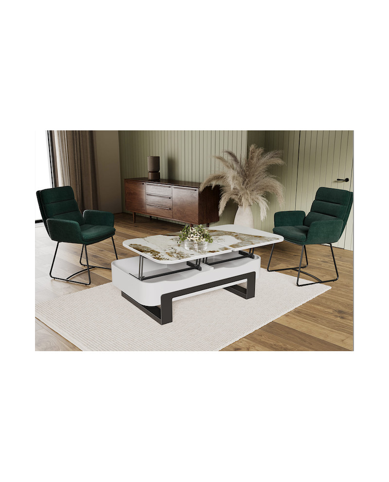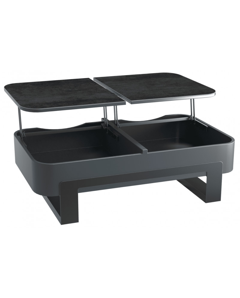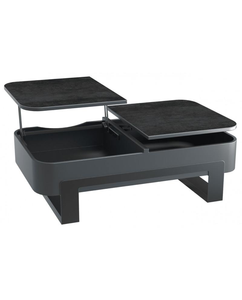 Découvrez Sydney, une table basse dinette idéale pour créer un espace chaleureux et multifonctionnel. Elle dispose de deux plateaux astucieux qui se déploient facilement vers vous. Grâce à ses roulettes équipées de freins, subtilement intégrées dans son piétement, Sydney est facilement mobile. Sa structure est en MDF laqué gris anthracite, ses tablettes sont revêtues de 3 mm de céramique Marbre Calcatta. Sydney mesure 120 cm de longueur, 70 cm de largeur et 38 cm de hauteur.