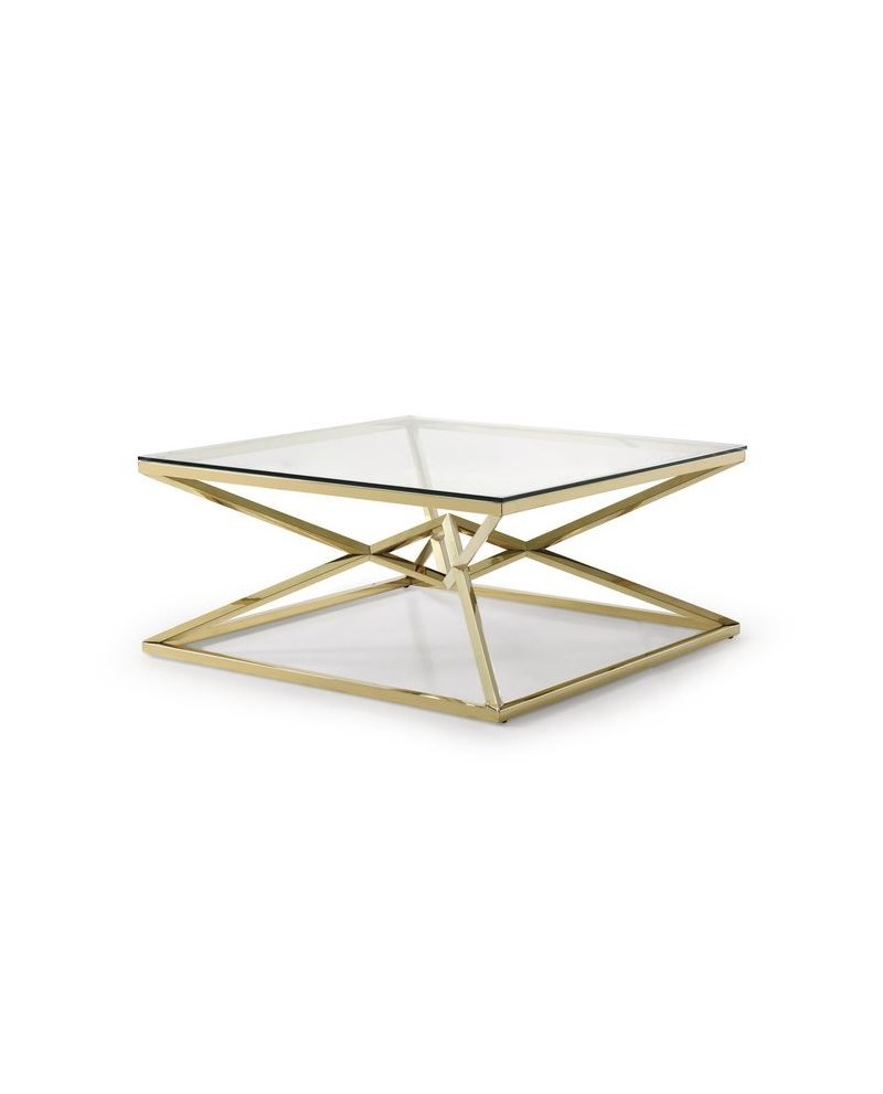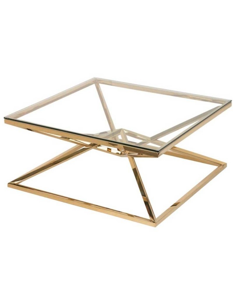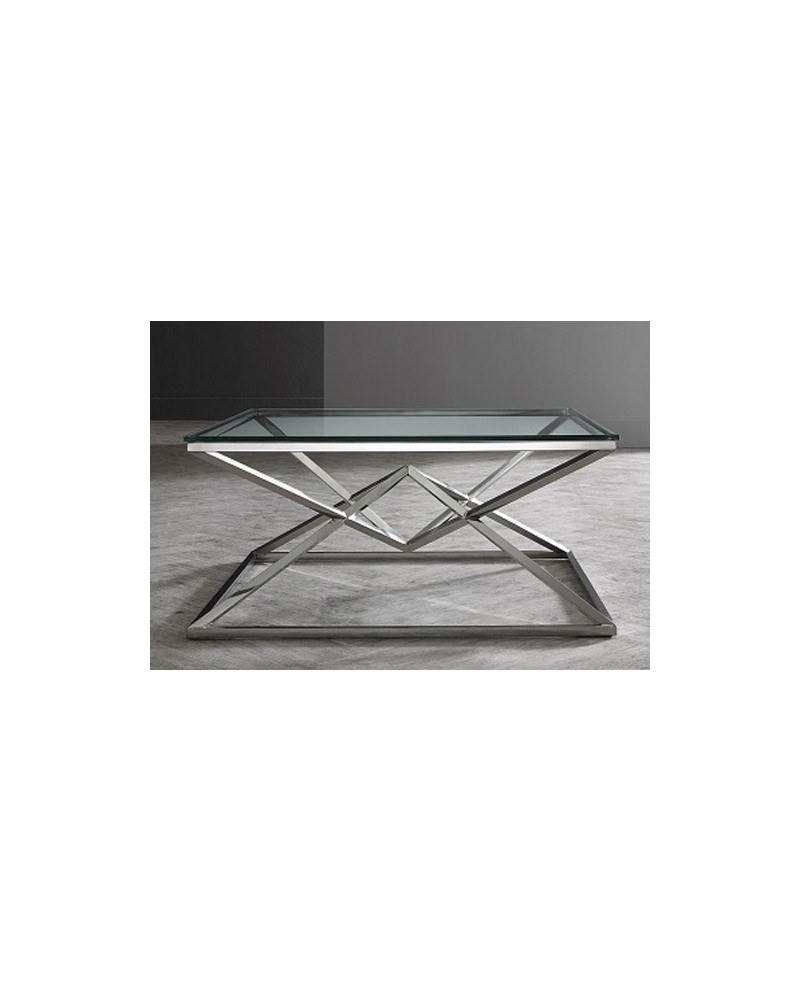 Elégante table de salon piètement acier chromé, plateau verre trempé.