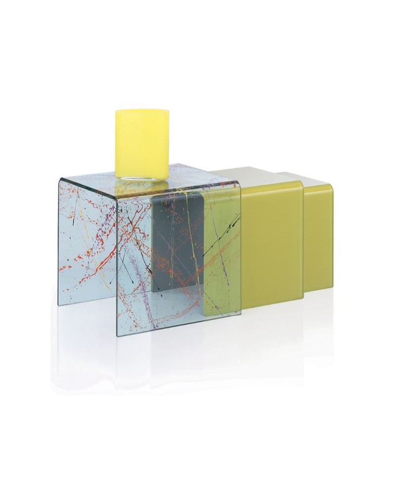 Table gigogne ATLANTA en verre couleur, non dissociable)