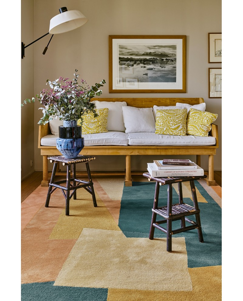 Le tapis peut être une pièce artistique en plus d’être un accessoire de décoration. Comme un tableau cubiste de la meilleure époque, le Tapis Pablo décliné sa palette de beige, réveillée par du bleu canard. Le travail des tisserands, jouant des textures et de la structure du velours renforce la palette arty de ce modèle. Sa qualité 100% laine locale, filée et tissée en Inde, réduit l’empreinte carbone en évitant des transports inter continentaux des matières premières.