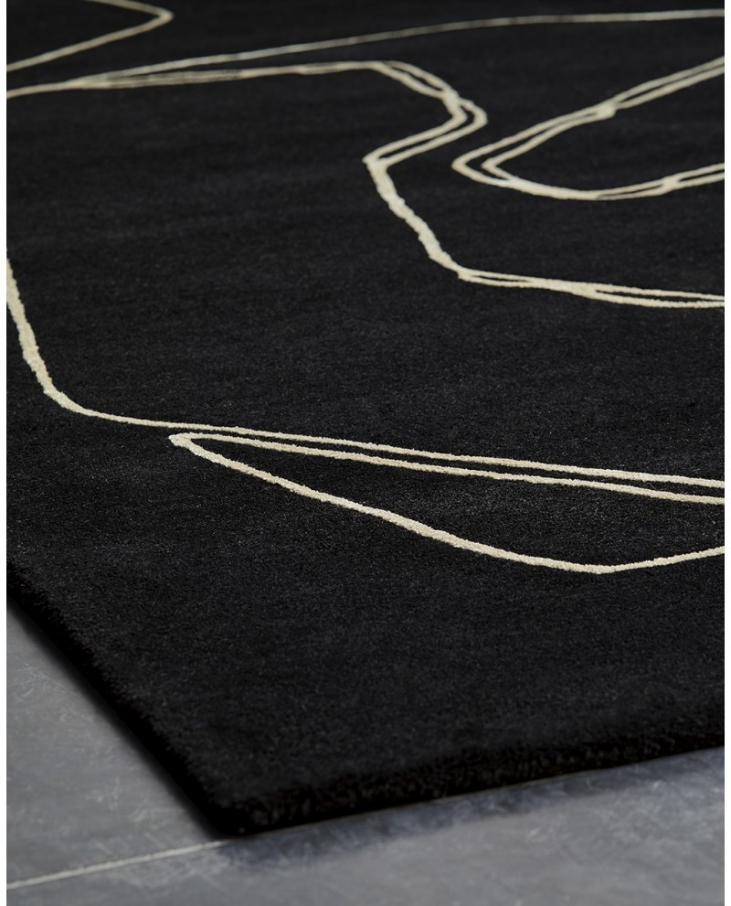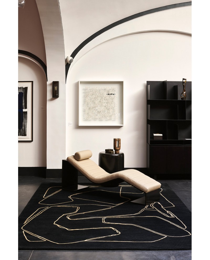 Ce nouveau travail artistique de Réda Amalou affirme l’importance qu’il donne à l’expérimentation, la recherche constante dans le processus de création, sous des angles différents. Issu de ses recherches en art mural, le tapis Amalgame retrouve la liberté du trait du designer sur une page noire plutôt que blanche.
