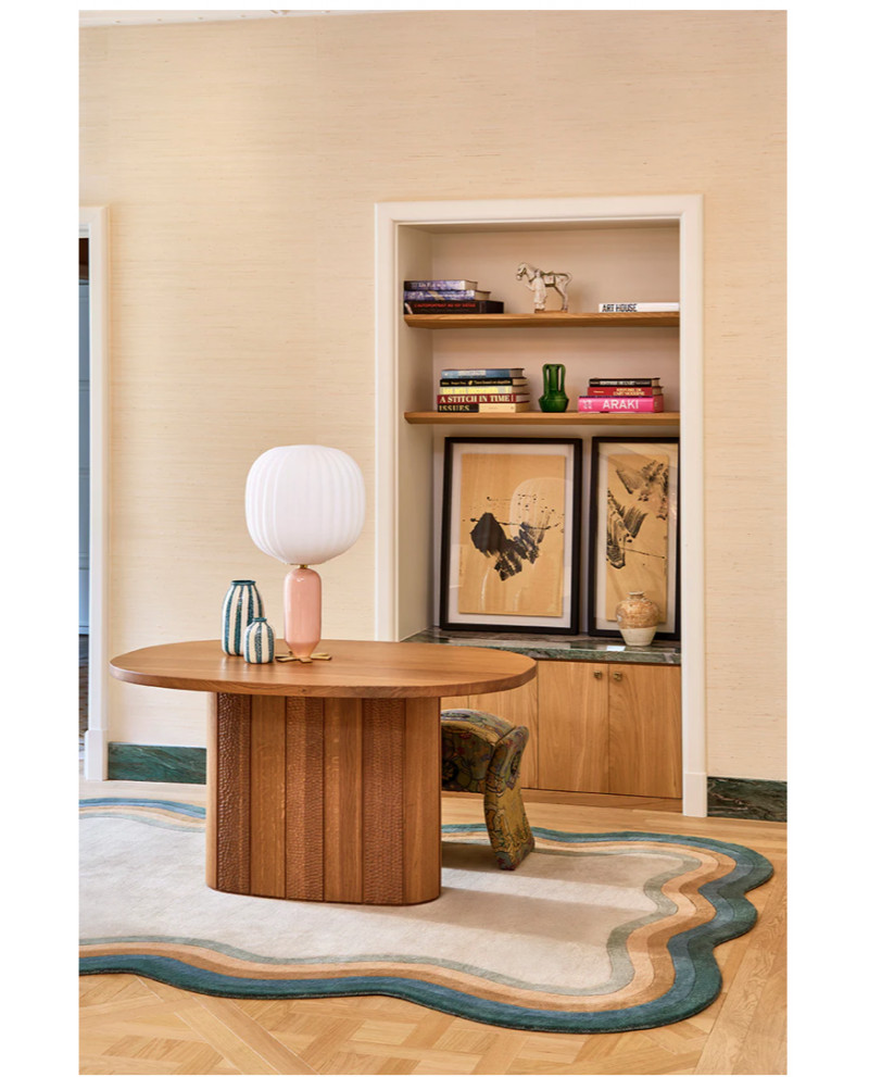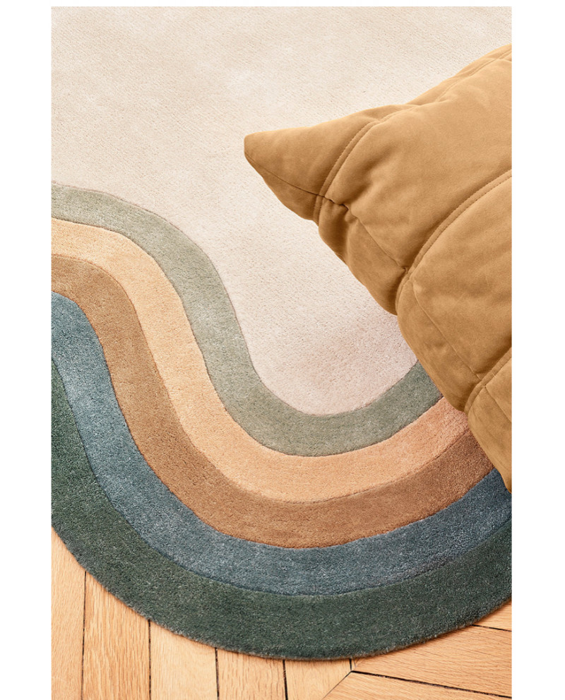 L'expertise du tuftage artisanal atteint ici un niveau de raffinement exceptionnel. La bordure ondulante signature demande une maîtrise parfaite des variations de hauteur, chaque courbe étant individuellement sculptée par nos artisans les plus expérimentés. Cette technique exclusive confère au tapis sa personnalité unique.