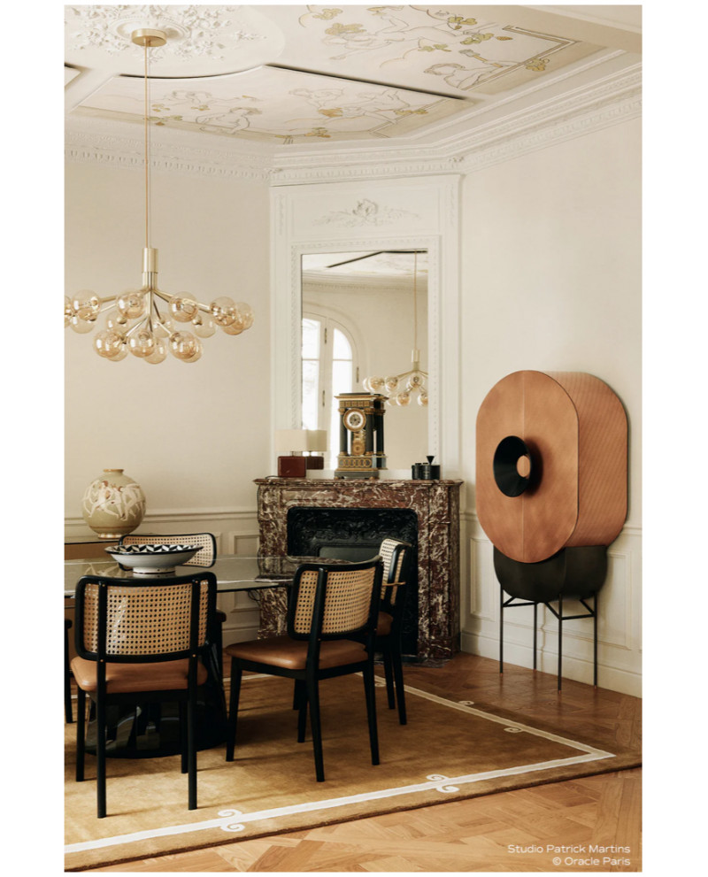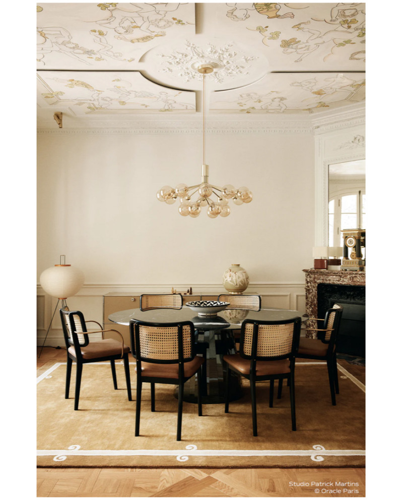 Les proportions étudiées du Syracuse permettent une intégration sophistiquée dans les espaces contemporains. Dans une bibliothèque aux boiseries anciennes, un salon aux influences méditerranéennes ou un espace de réception, ce tapis devient un élément architectural qui structure l'environnement avec caractère. Ses tons tabac s'harmonisent naturellement avec les matériaux nobles comme le noyer, le cuir patiné ou le bronze vieilli.