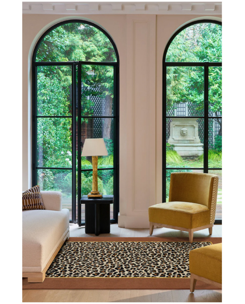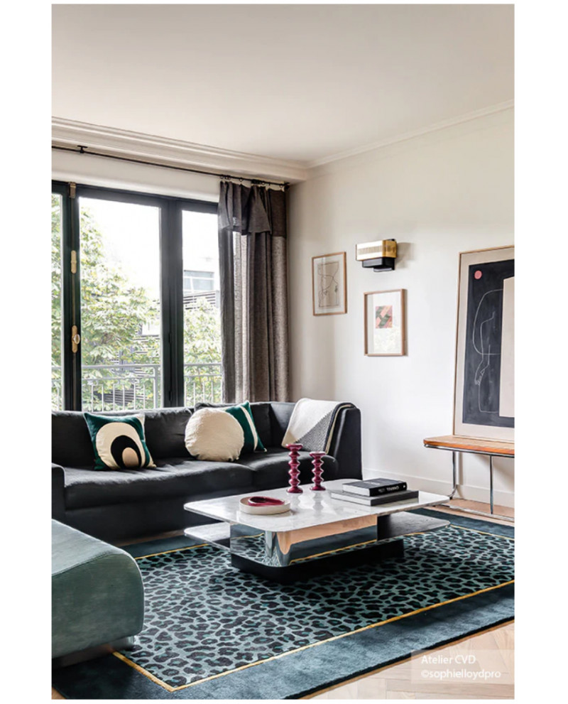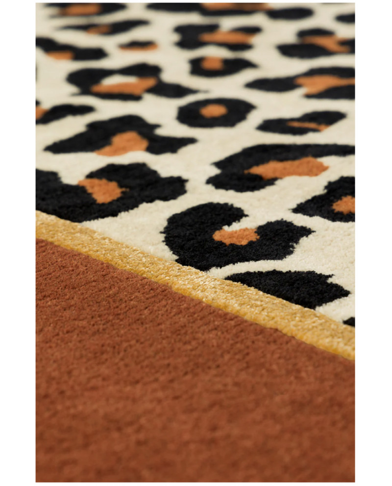 Le tapis beige en laine et viscose tufté main offre une interprétation hautement élégante du motif léopard réinventé par Toulemonde Bochart. Il reflète l'esthétique précieuse de l'antiquaire Madelaine Castaing, à travers sa palette de couleurs raffinées, la recherche minutieuse des motifs et le soin apporté à son encadrement. Ce tapis est méticuleusement confectionné à partir des plus belles laines peignées de Nouvelle-Zélande, dans une qualité de tissage particulièrement serrée, permettant la création de motifs d'une grande précision et d'une brillance exceptionnelle.