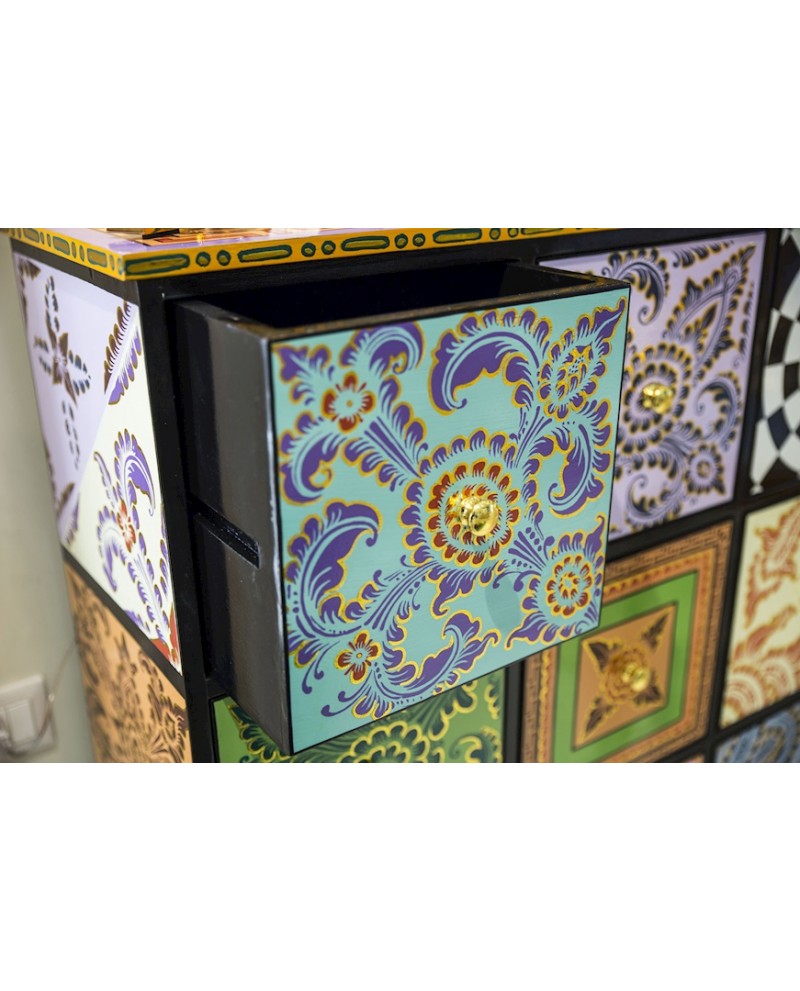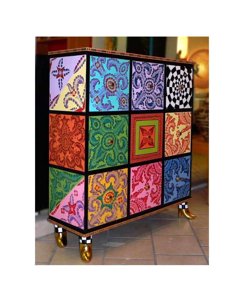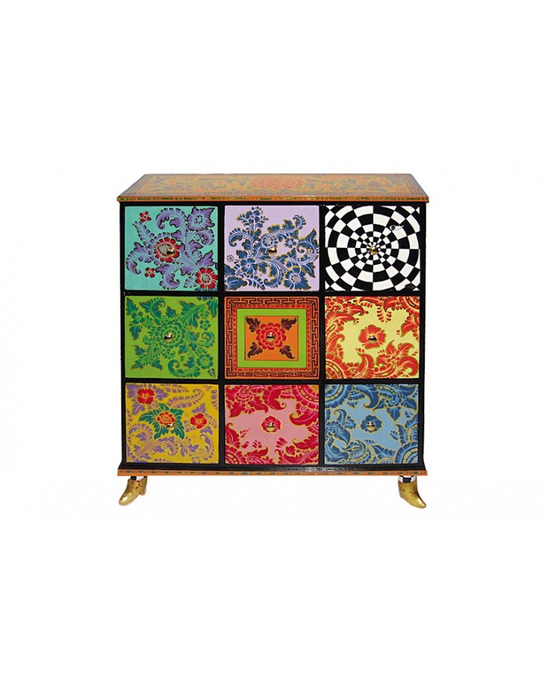 Commode 9 tiroirs DRAG CABINET en bois, peinte à la main. Elle fait partie de la collection des classiques des Tom's Drag de Thomas Hoffmann.