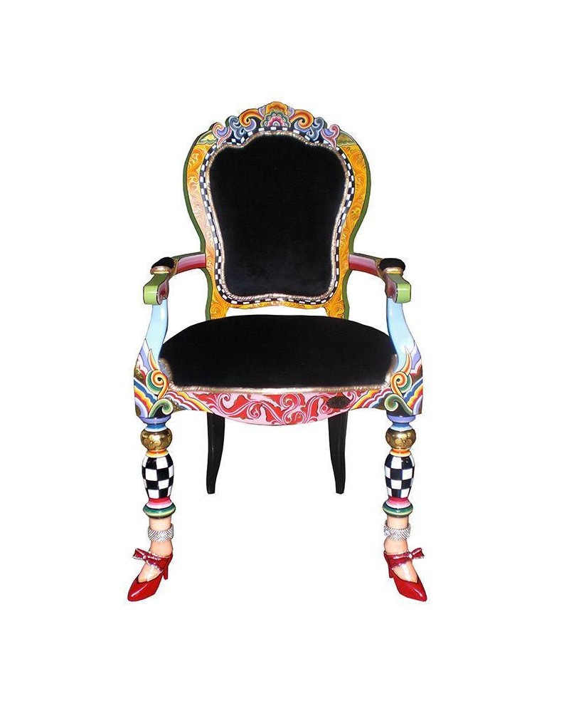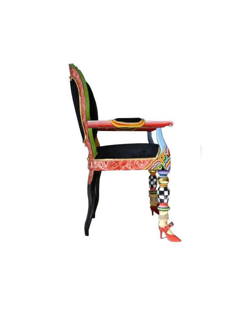 Magnifique chaise en bois peint à la main, mousse HR recouvrement polyester aspect velours.