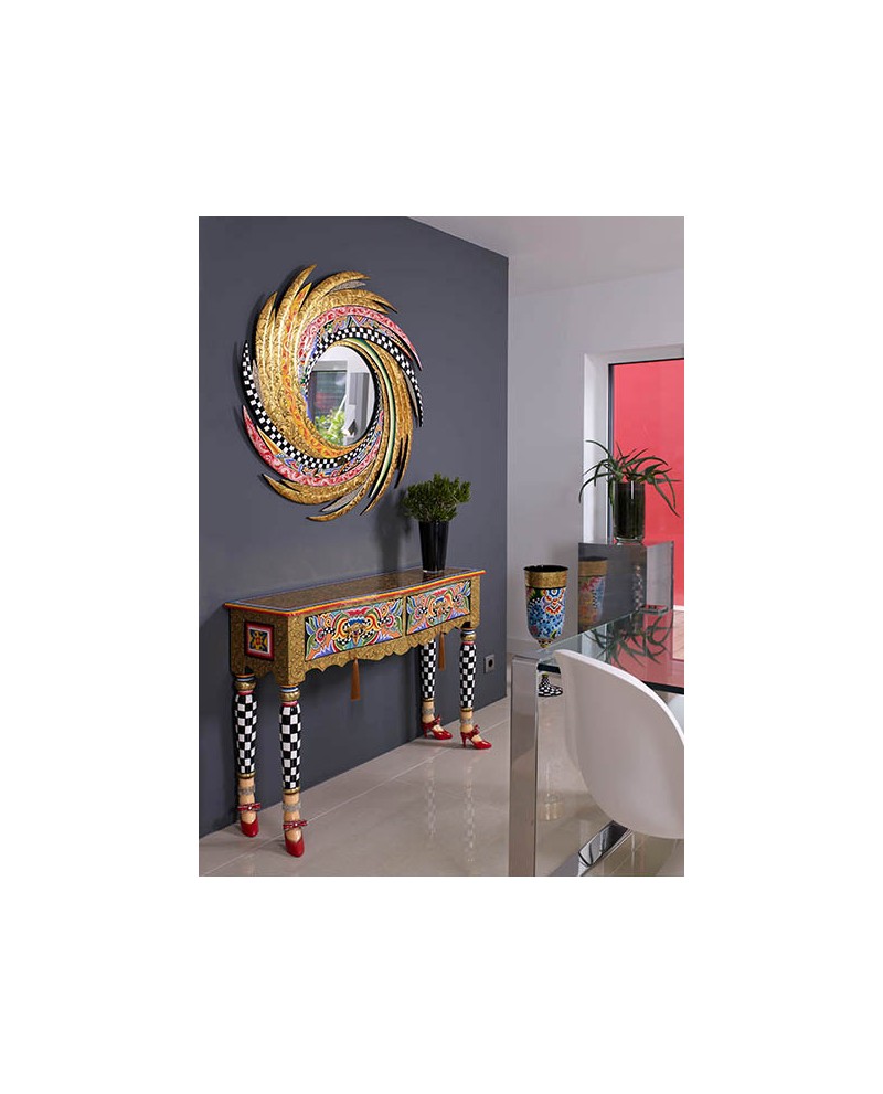 Les riches détails aux motifs variés des miroirs incitent à la contemplation. Un univers décalé, multicolore et amusant !