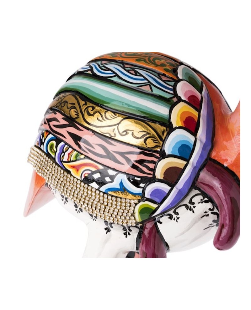 Comme tous les animaux de la collection Tom’s Drag, ces sculptures rayonnent de multiples couleurs et dorures qui leur donnent vie.