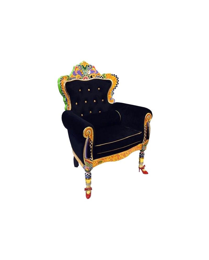 Trône VERSAILLES en bois peint à la main, mousse HR recouvrement polyester aspect velours.