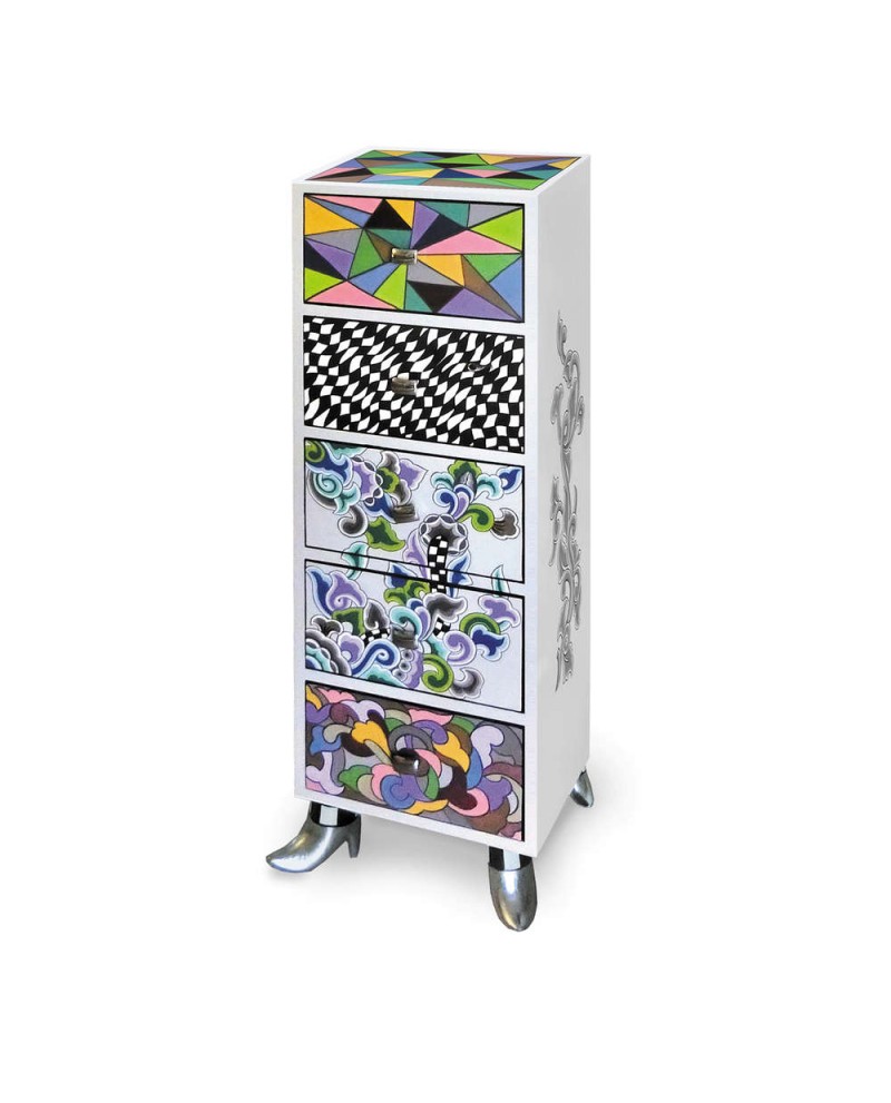 Chiffonnier 5 tiroirs DRAG CABINET SEATTLE en bois peint à la main, il fait partie de la collection Silver Line des Tom's Drag.