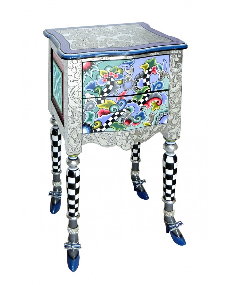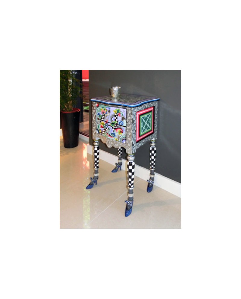 Le chevet VERSAILLES 2 tiroirs, en bois et peint à la main, fait partie de la collection Silver Line des Tom's Drag.