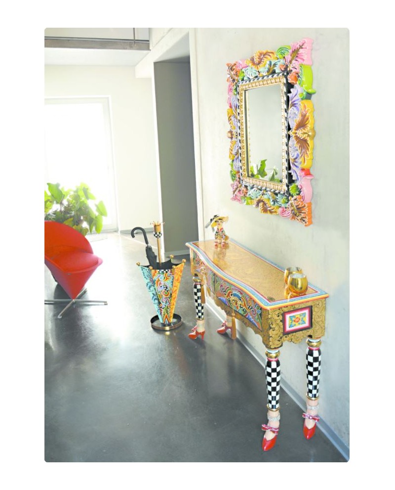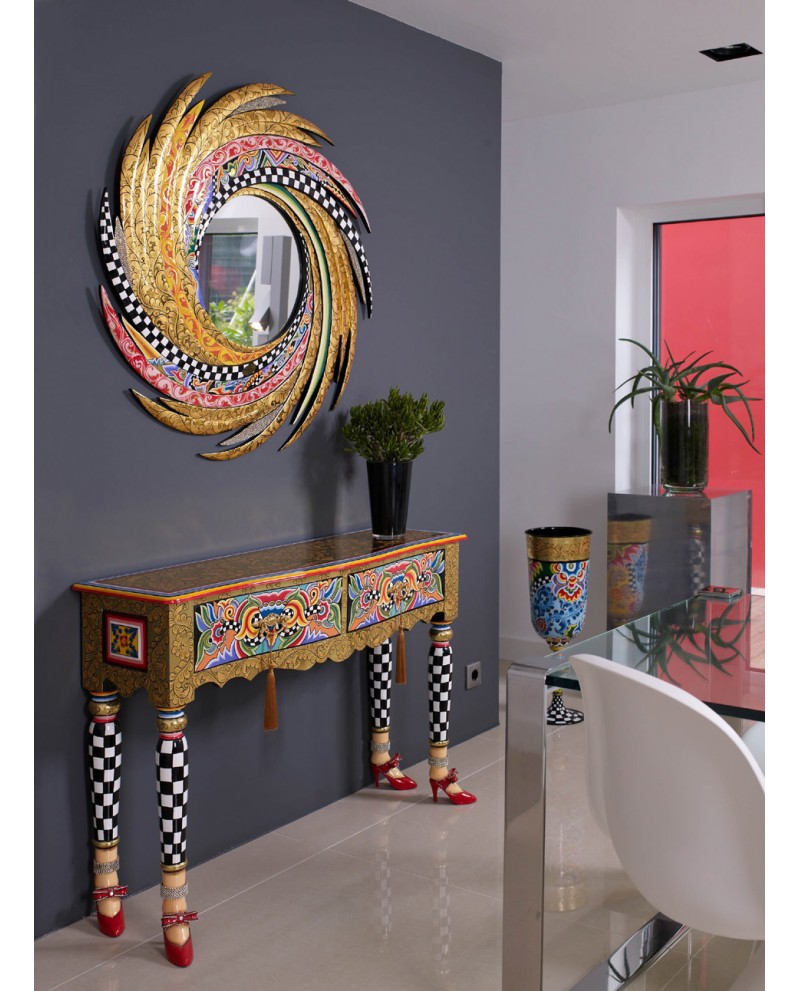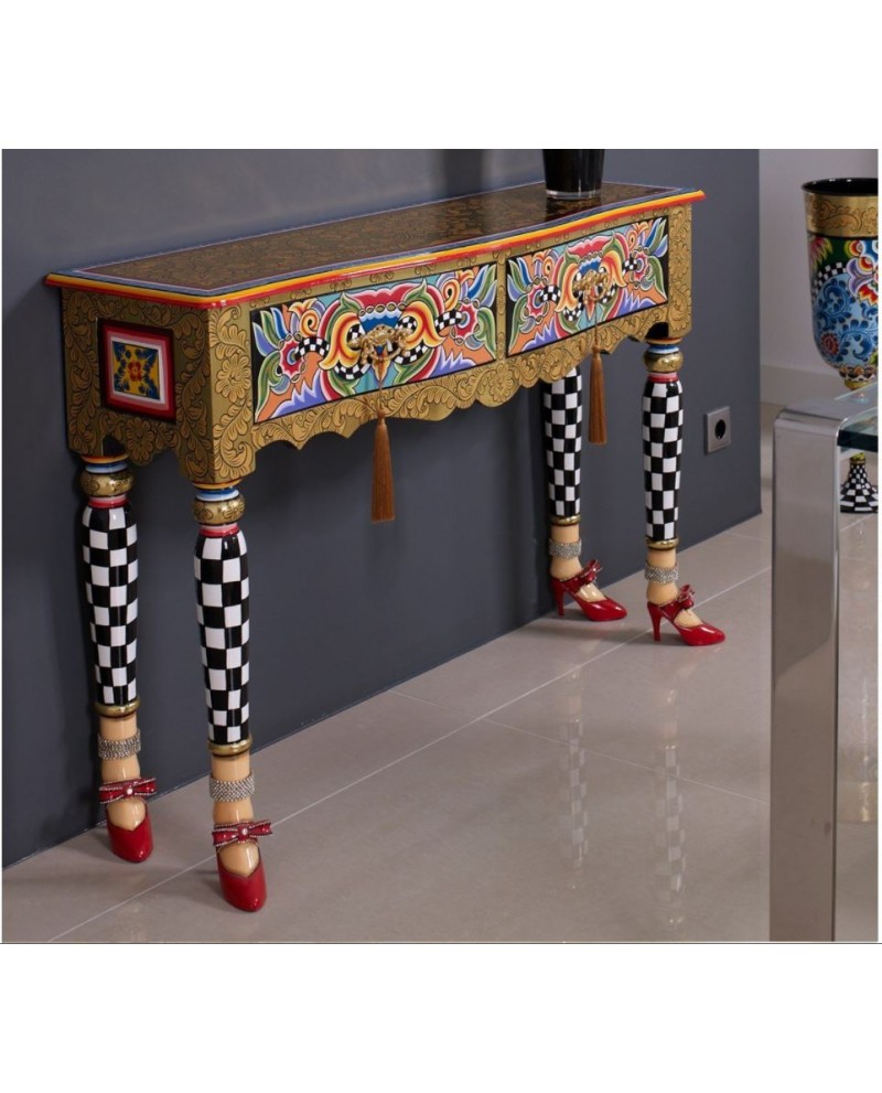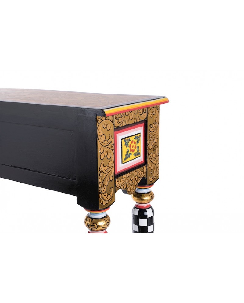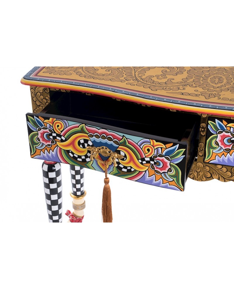 La console VERSAILLES 2 tiroirs, en bois et peinte à la main, fait partie des classiques de la collection des Tom's Drag.