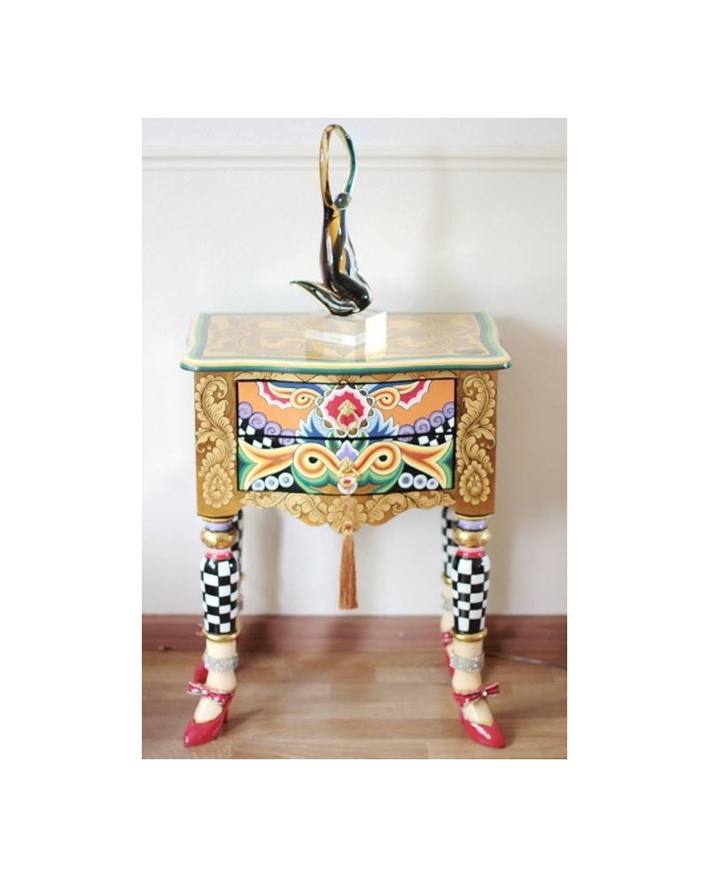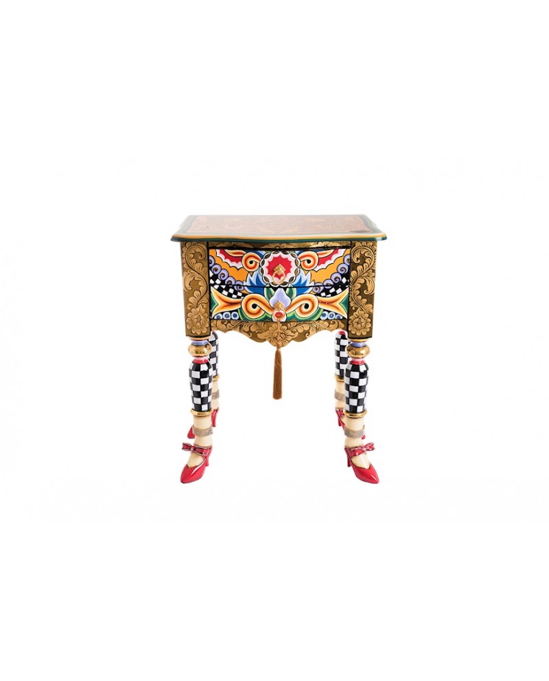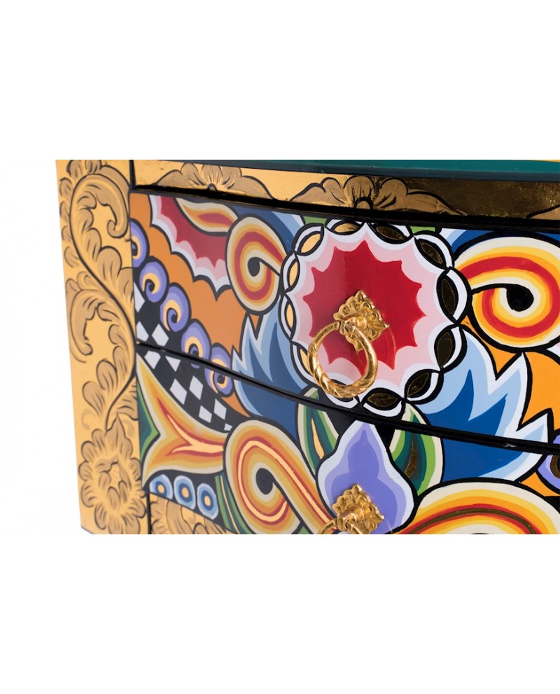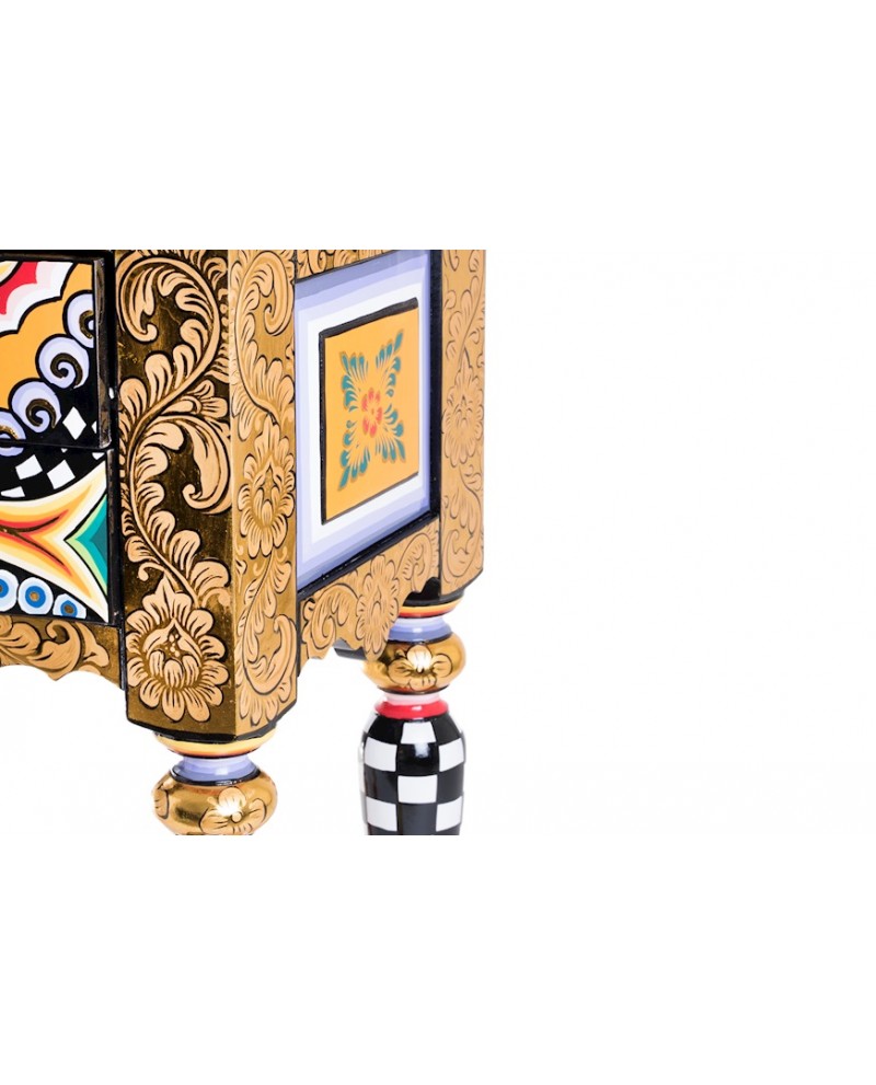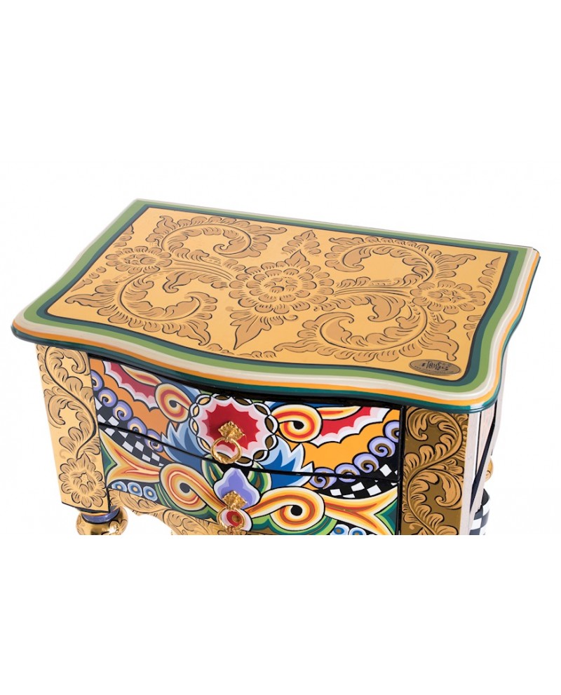 Le chevet VERSAILLES 2 tiroirs, en bois et peint à la main, fait partie des classiques de la collection des Tom's Drag.