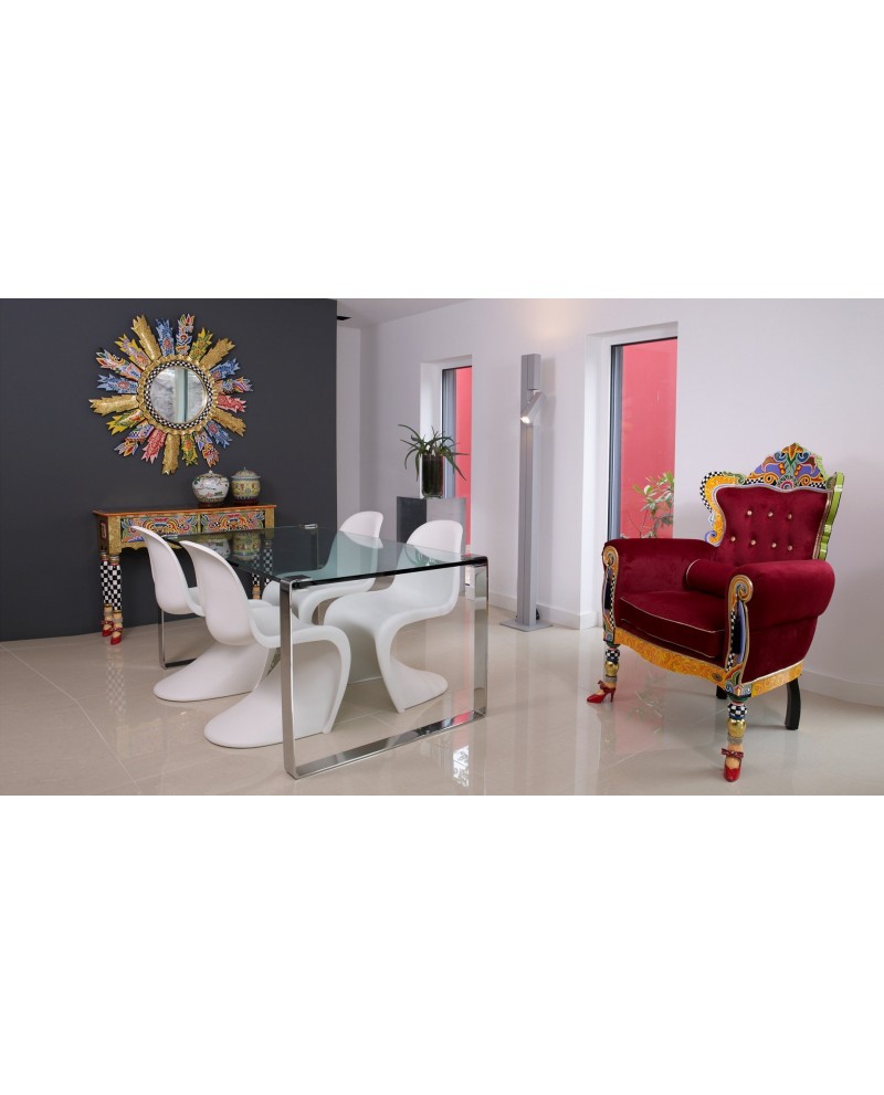 Les riches détails aux motifs variés des miroirs incitent à la contemplation. Un univers décalé, multicolore et amusant !