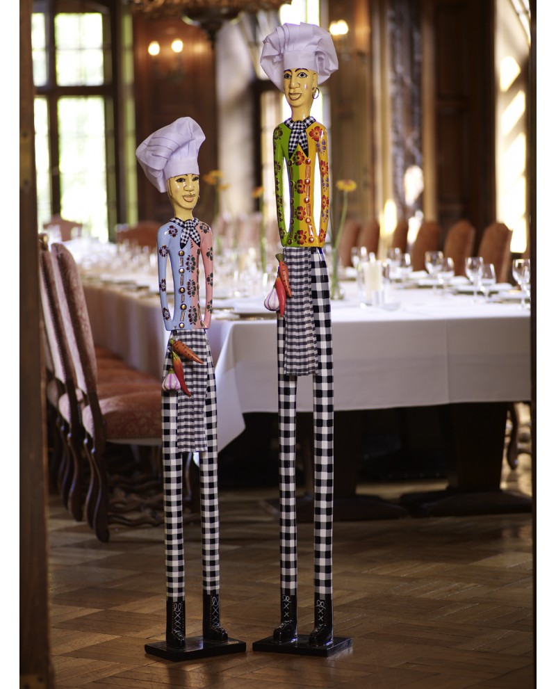 Le chef cuisinier MICHEL fait partie de la collection des personnages Tom's Drags de Thomas Hoffmann, réalisé à la main, application de feuilles d'or et laque de Chine.