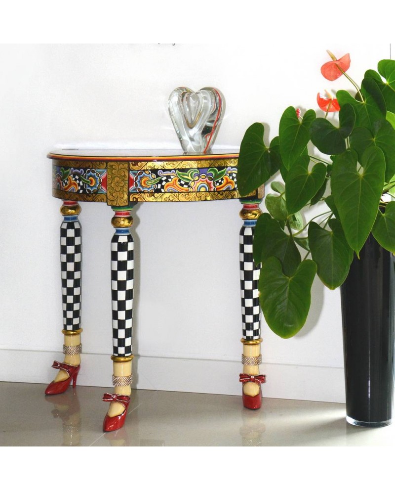 La console demi-lune VERSAILLES en bois peinte à la main, fait partie des classiques de la collection des Tom's Drag de Thomas Hoffmann.