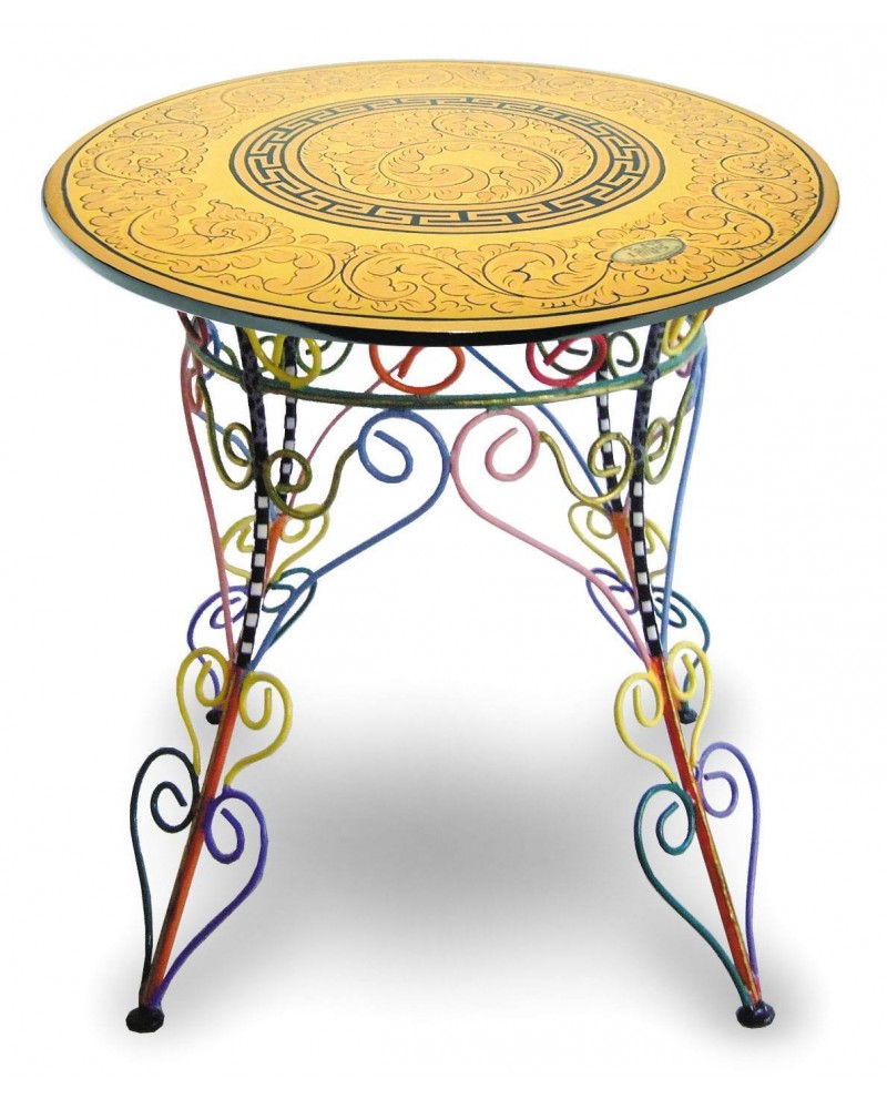 La table d'appoint Gazebo aux tonalités vives et festives est décorée de dorures au style baroque. Ses pieds apportent de la finesse, de la légèreté et de la gaieté pour un design contemporain.