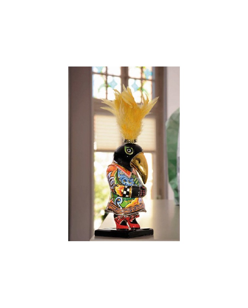 Le corbeau Magnus est très élégant de par sa posture et sa tenue richement décorée aux couleurs vives et chatoyantes.