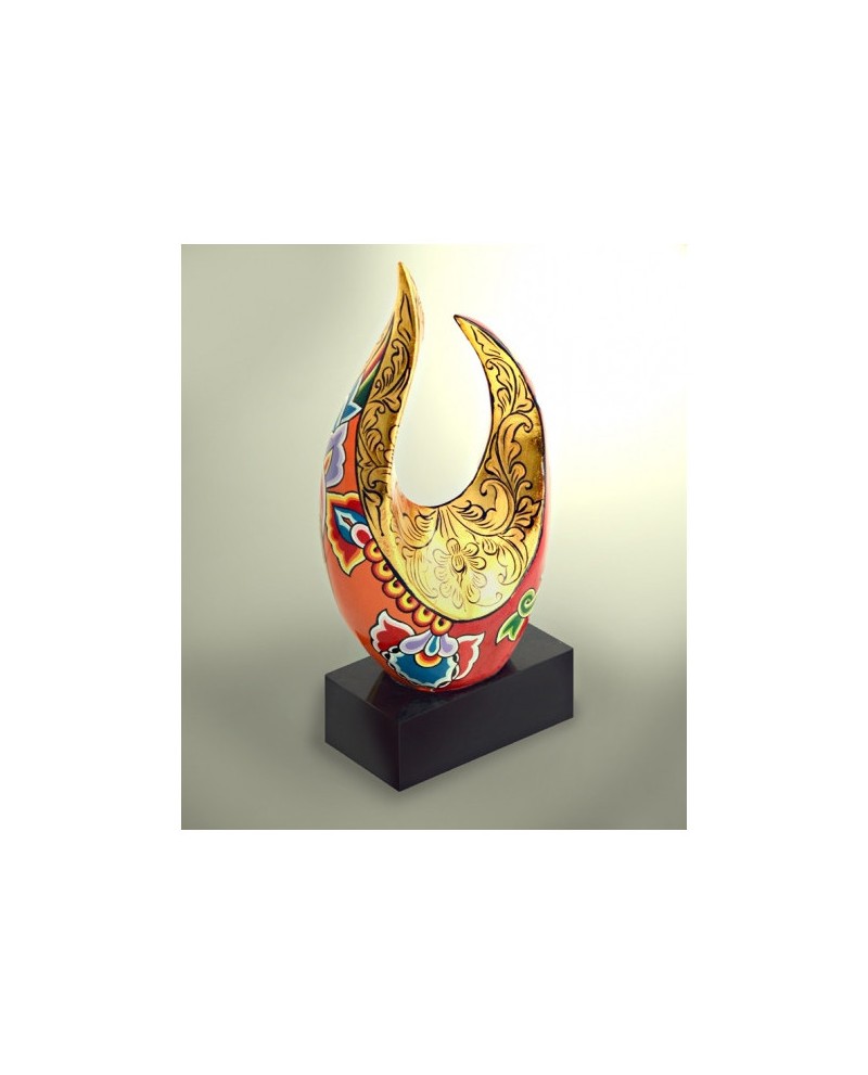 Riche de motifs aux couleurs chaleureuses et dorées, cette statue apportera de la lumière à votre intérieur.
