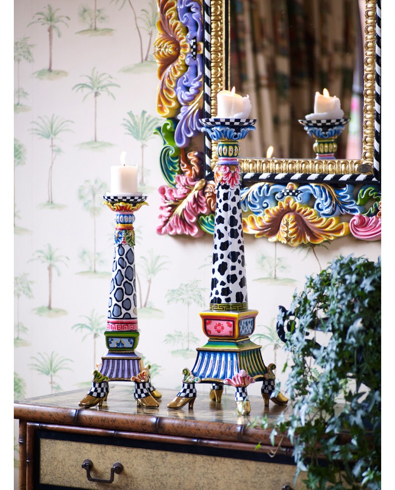 Ce bougeoir baroque est posé sur 4 pieds aux célèbres bottines dorées et aux motifs chaleureux et colorés.