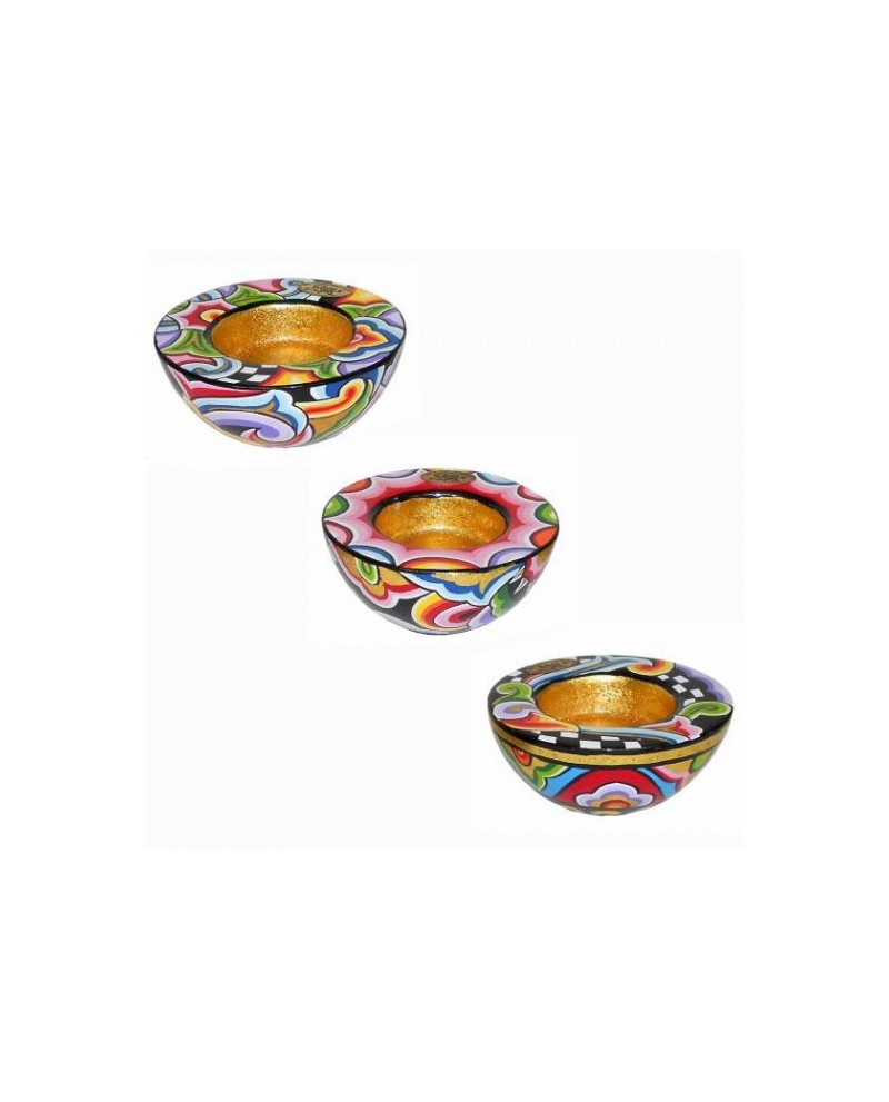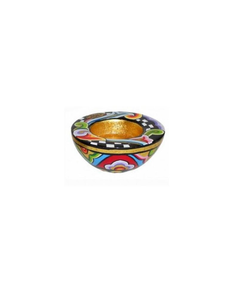 Ce bougeoir rond style photophore aux motifs chaleureux et colorés et au célèbre damier noir et blanc de l'artiste apportera une touche lumière et de couleur à votre déco intérieure !