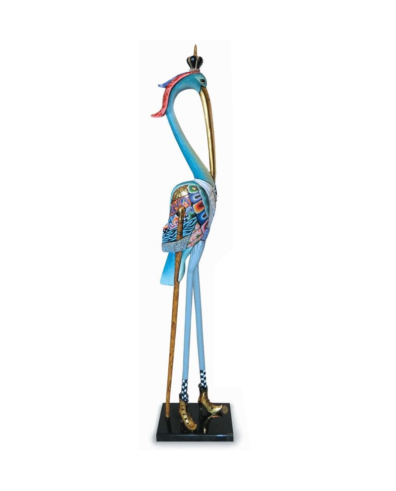 Herr Ron au profil longiligne, au long bec et emmanché d'un long coup, est très élégant et distingué avec sa canne et ses bottines dorées ! Tout la haut, sur sa tête, il porte une couronne qui lui donne une allure majestueuse.