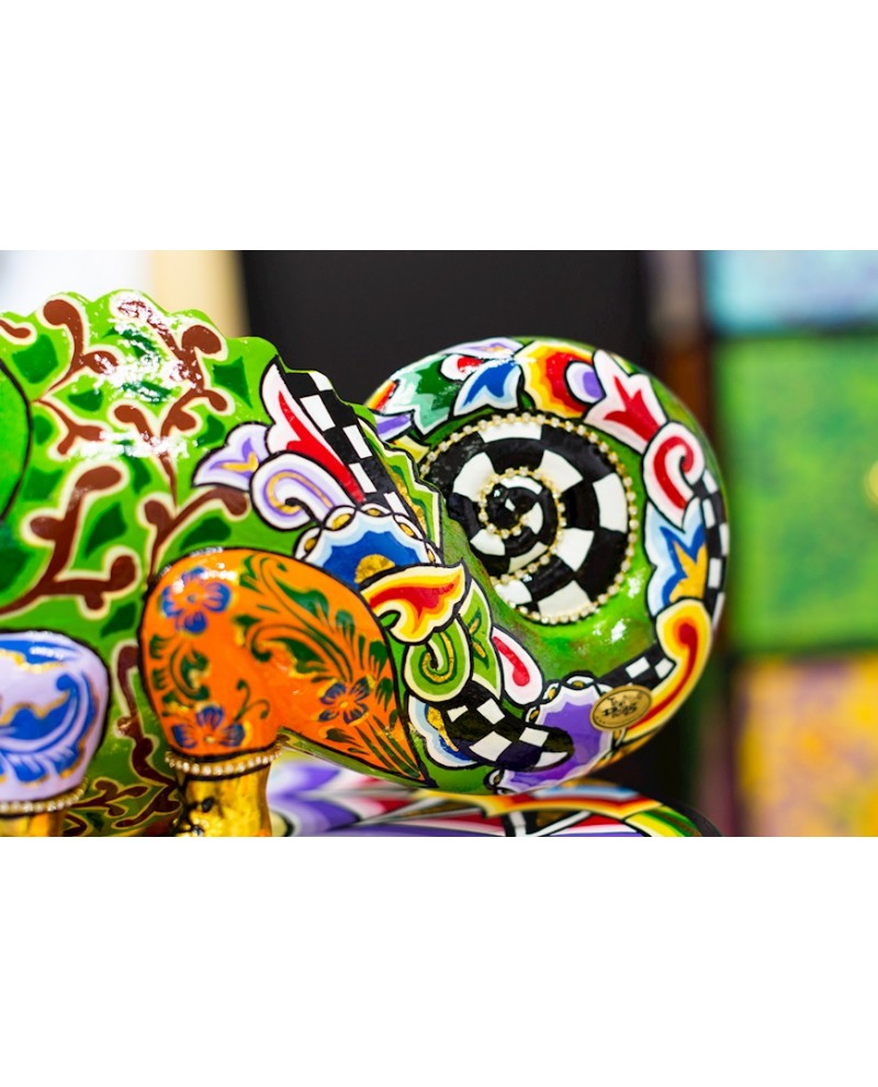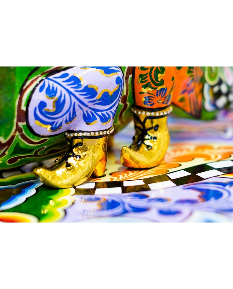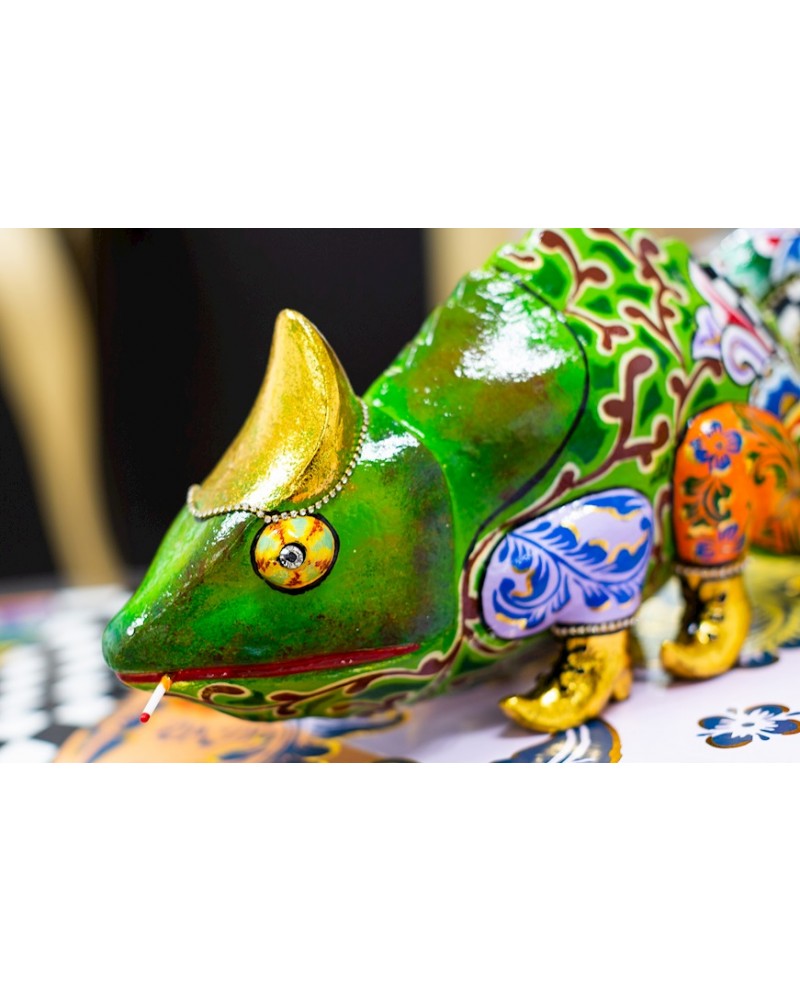 Ces animaux sont habillés de costumes fantastiques aux couleurs d’un arc-en-ciel, relevés d'ornements élaborés et exotiques comme dans un cortège de carnaval. Chaque pièce est un peu plus folle et excentrique que l'autre, et elles sont toutes de vrais capteurs de regards et de lumière dans la maison.
