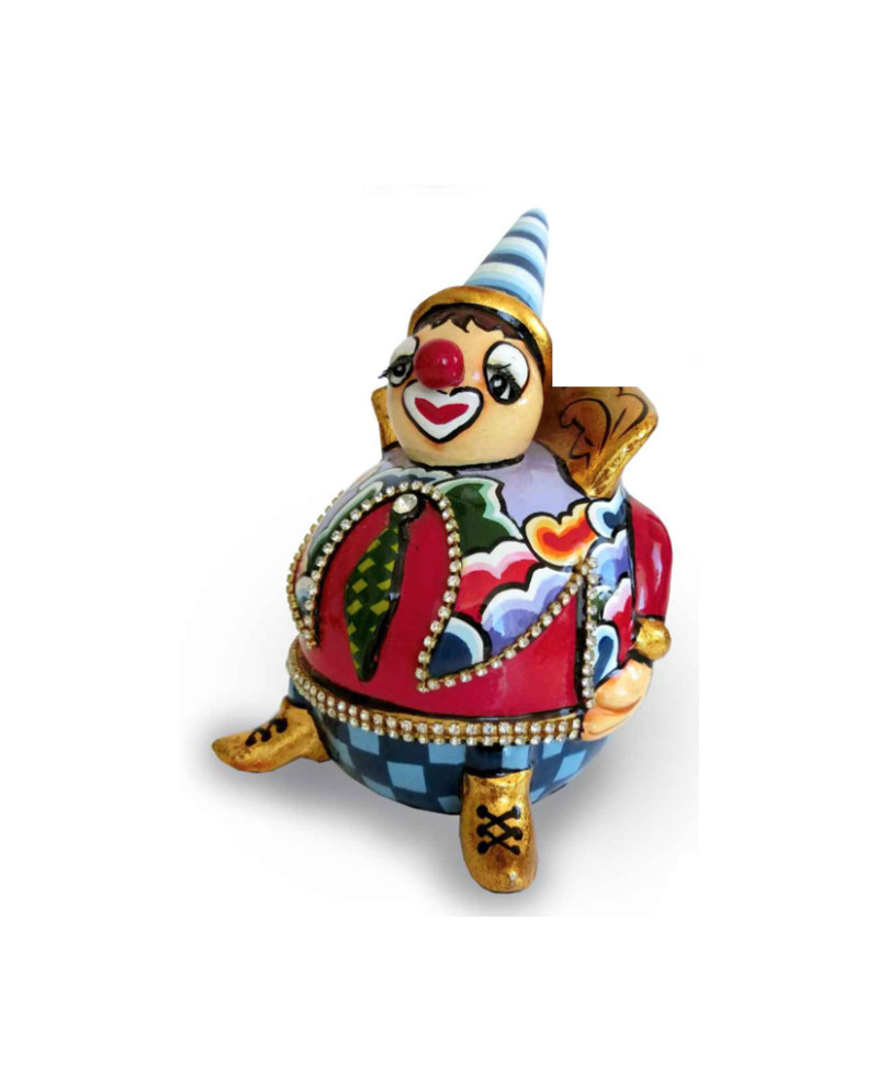 La CLOWN ALFREDO taille S fait partie de la collection des Drags de Thomas Hoffmann, réalisée à la main, application de feuilles d'or et laque de Chine.