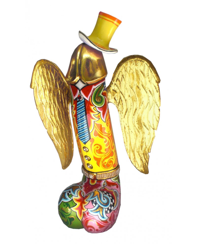 Le Drag Zizi met à l'honneur la virilité avec cette sculpture à l'effigie du sexe masculin ! Chaque modèle est orné de motifs baroques et floraux aux couleurs vives. Il est vêtu d'un costume avec une cravate des boutons et une ceinture parés de bijoux telle une figurine masculine. Pour lui donner un côté humoristique et sage, ils déploient des ailes dorées mettant en valeur les gravures tel un ange !