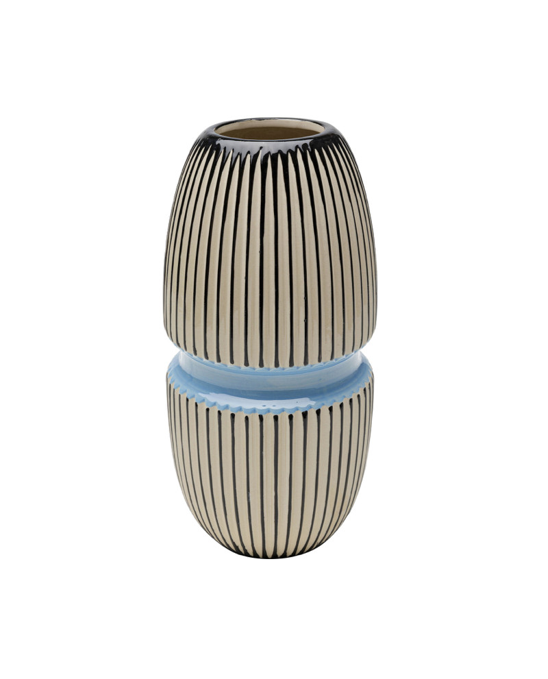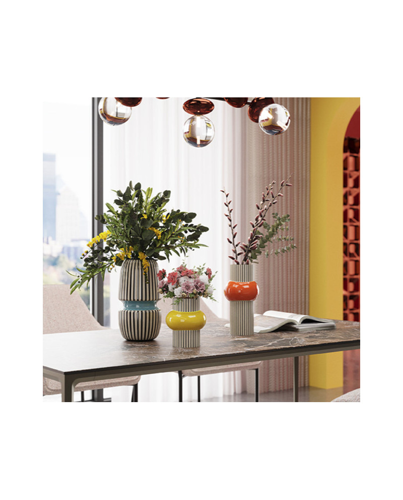 Le vase en porcelaine rayé noir et blanc avec une touche de bleu est une pièce unique peinte à la main qui allie un design moderne à une touche de romantisme. Qu'il soit utilisé comme vase à fleurs ou comme élément artistique à part entière, son design individuel en fait un élément phare de la table, du buffet ou du rebord de fenêtre. Associé à des éléments sobres ou à d'autres couleurs vives, il rayonne d'un charme frais et d'une grande élégance.