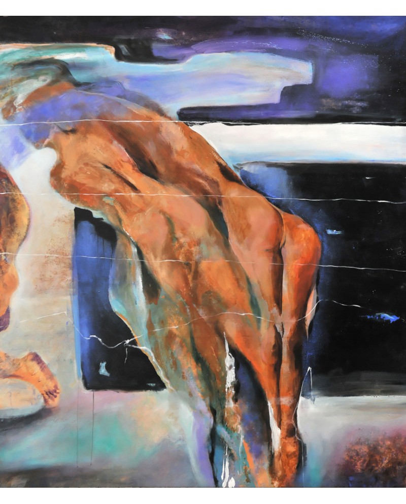 Peinture "Scéno-graphique" et "Vie sur toile" sont des expressions toutes neuves qui coïncident parfaitement avec l’univers restitué en peinture par Zeyno Arcan, dans la fluidité d’un geste pictural où les matières se déversent sur la toile, le papier, pour se fondre les unes contre les autres avec toute la délicatesse d’une confrontation, celle du corps sur le support. Dans sa peinture se concentrent tous les moyens d’expressions chers à l’artiste au service des valeurs qu’elle défend : la danse, corps et mouvement, la couleur, lumière et matière. La magie de la peinture de Zeyno vient du fait qu’au profit de l’expression corporelle, la facture, fluide et aérienne, concourt à la représentation sensuelle de ces corps mouvants dans un espace indéfini. Chaque composition semble être la projection de soi en vie, soi avec autrui, dans ce monde, aujourd’hui. Les corps dansent, suspendus entre ascension et chute, au point de liaison médiane du tableau. L’équilibre se crée ici, à la jonction du haut et du bas, de l’élévation amorcée et de la retombée du corps dans la légèreté.